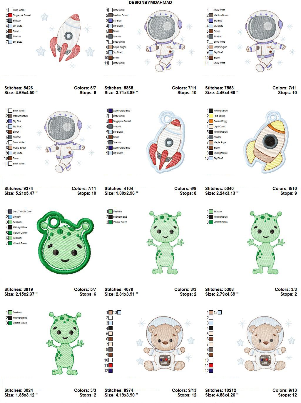 teddy bear astronaut embroidery design bundle - Alien embroidery designs machine embroidery pattern - spaceship embroidery file - sky pes instant download.