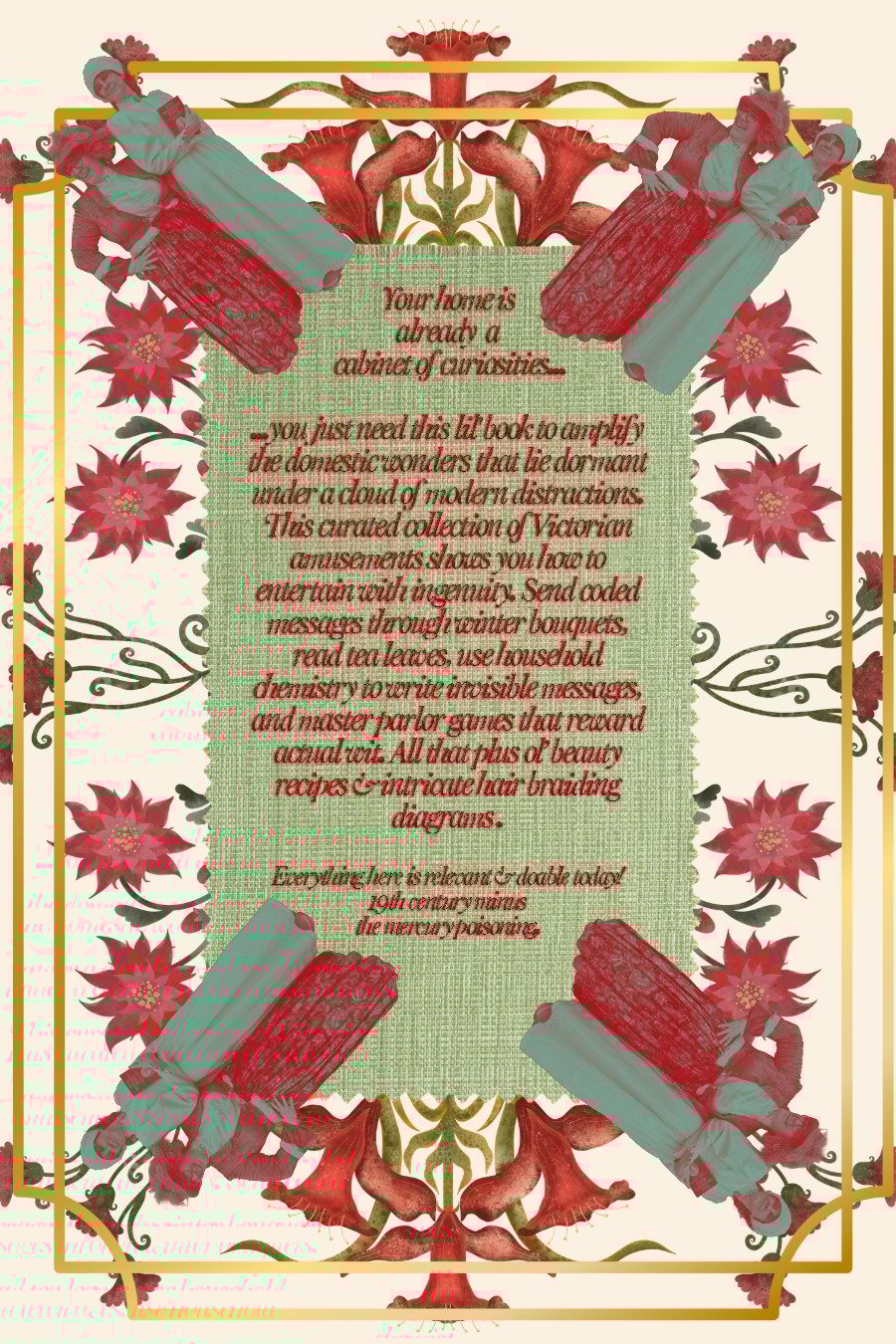 Our Holiday (and any day) Book of 19th Century Inspired Home Amusements & Creative Endeavors has the very best historic finds, parlor game info, creative inspiration, weird old timey livin' tidbits, recreational history, home chemistry, and fortune telling instruction you need to entertain yourself or discerning guests.