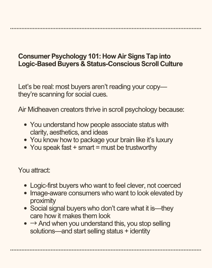 If your Midheaven is in Gemini, Libra, or Aquarius—your path to sales was never about emotion. It was about intellect, image, and influence.