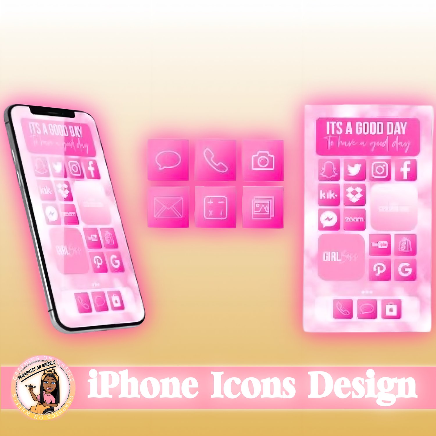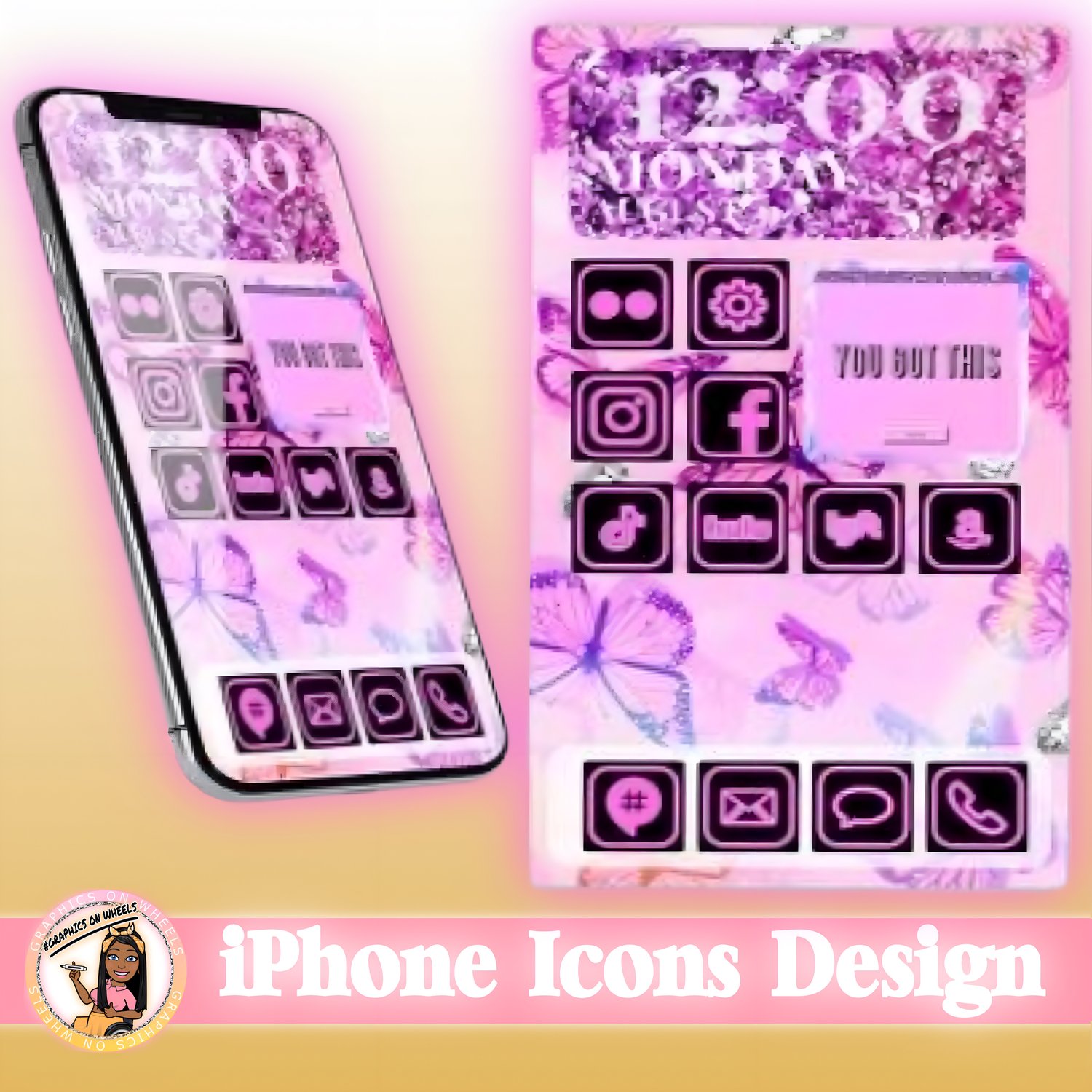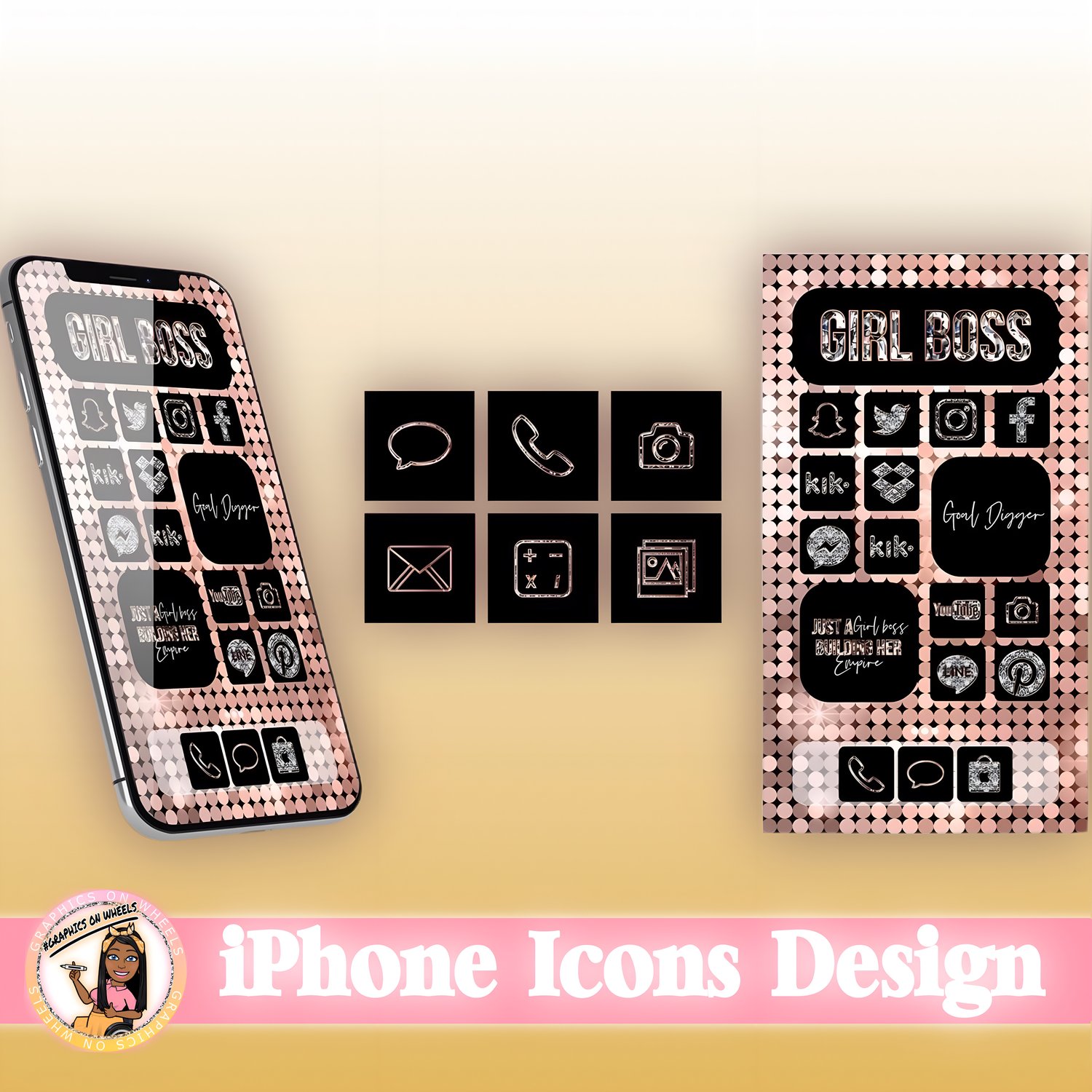 Glam up your iPhone or iPad home screen with this app icons design with 1 background and 2 widget backgrounds.