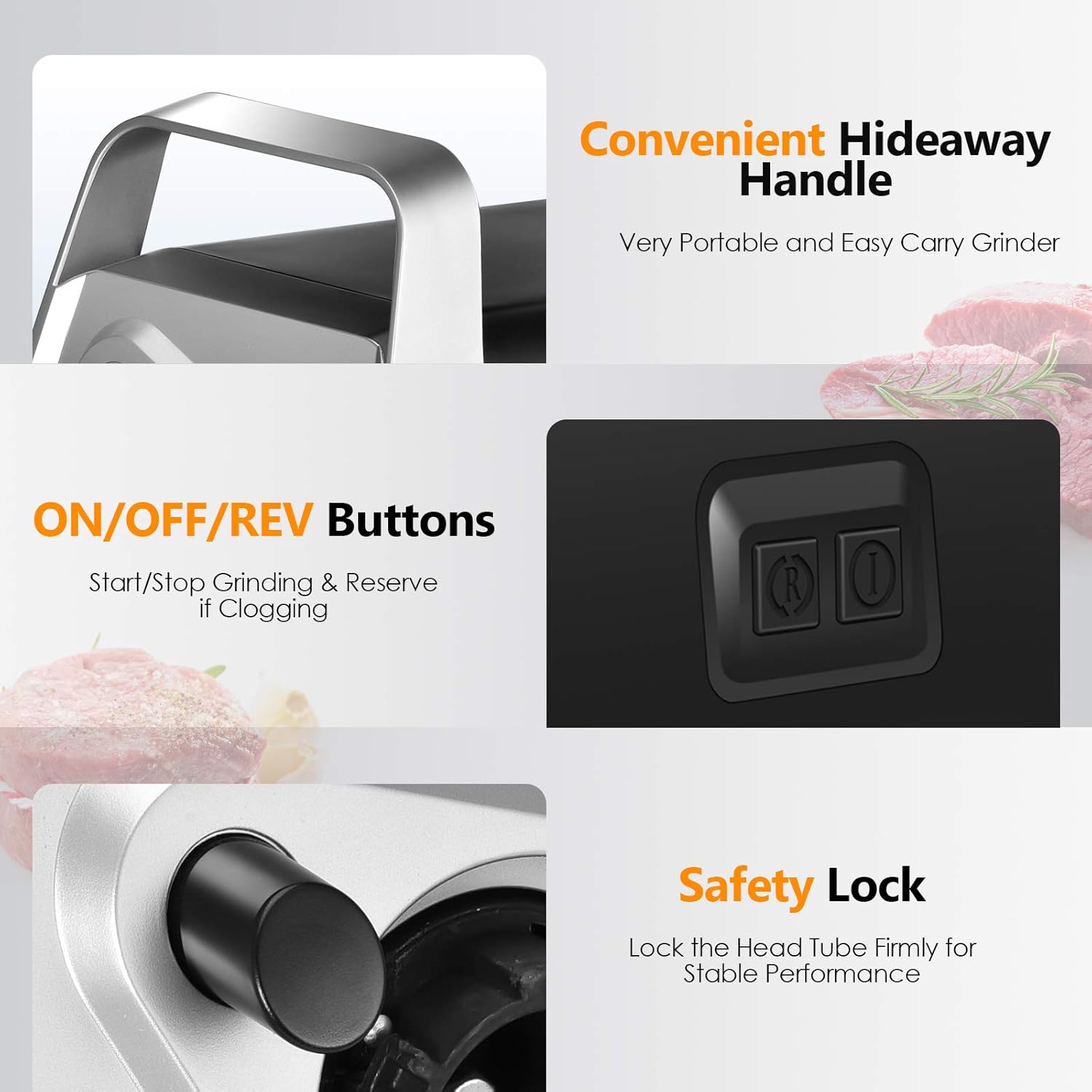 - [Auger Update] our kitchen home meat grinder is using the 3-layers auger pulls reduce the heat in grinding to lock the nutrition and prevent from storying the meat fiber. In this update, our food grinder as much as possible reduce the situabtion of the gray streaks coming out on minced meat. It not only ensure fresh of the ground meat but also Make you and your family healthier.