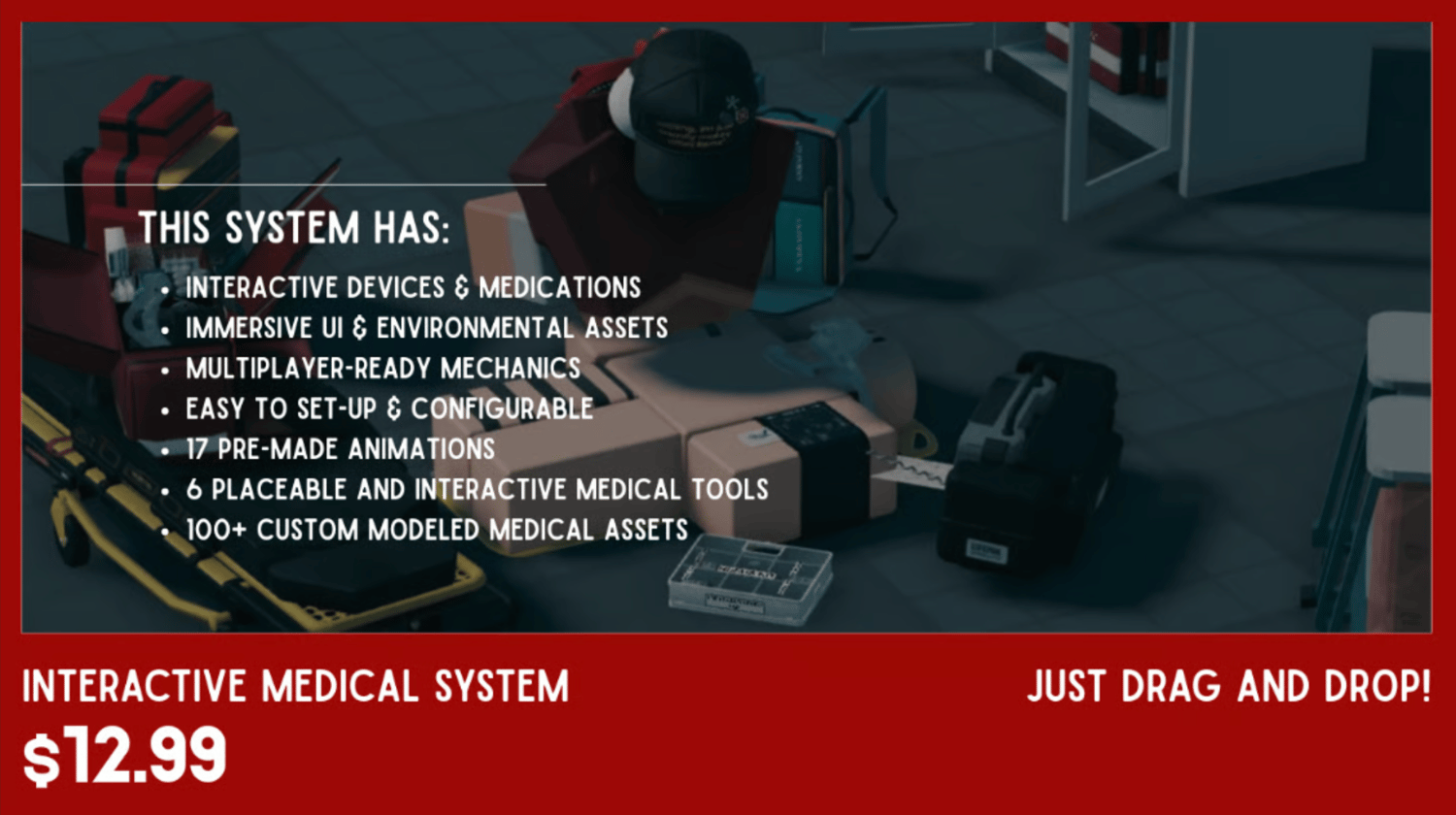 - 6 fully placeable and interactable medical tools (Bandage pouch, Lifepak 15, OXY-RESUS, R-AID PRO, RESUS BOX [Medications], Trauma Bag)