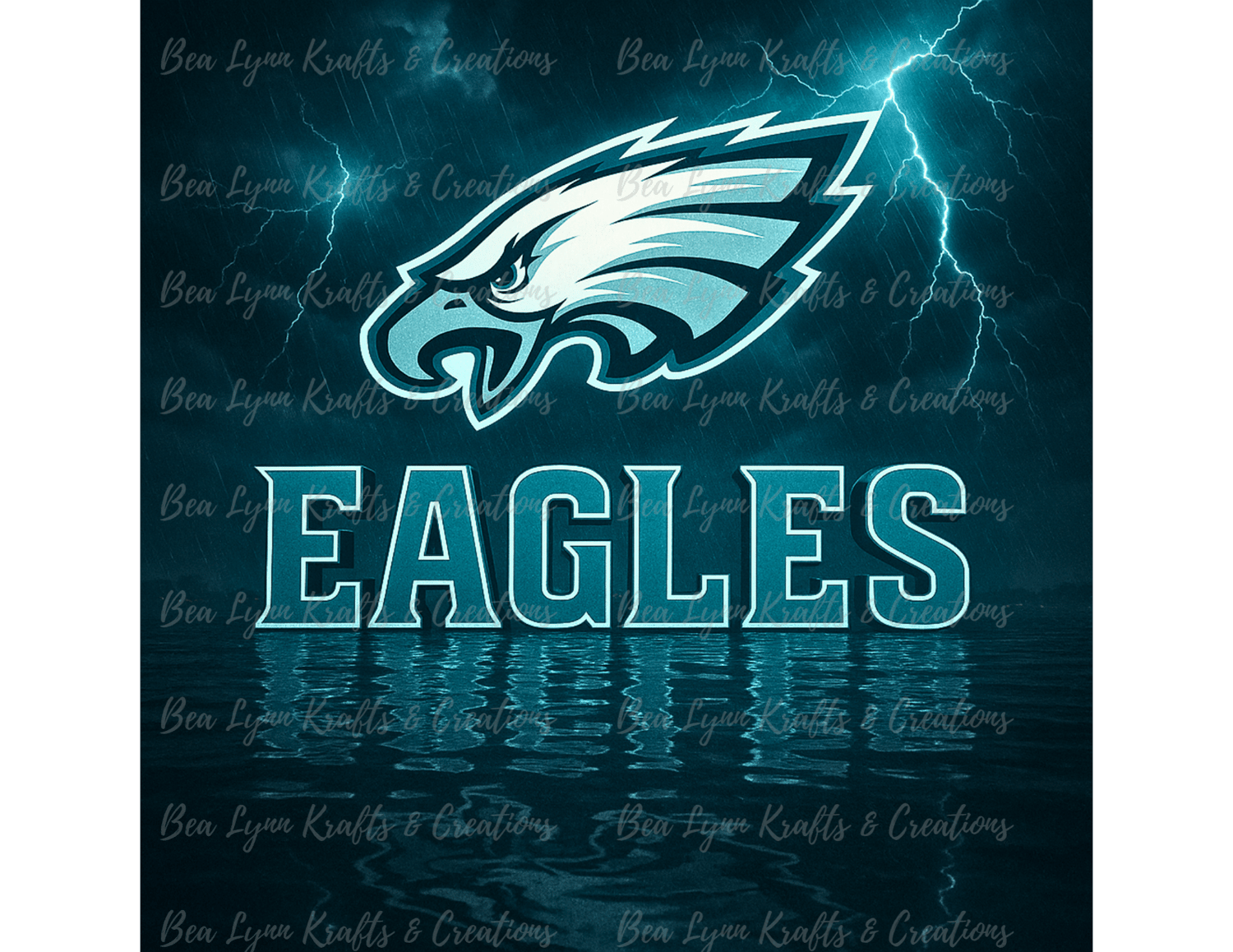 Philadelphia Eagles Storm PNG – Iconic Logo & Floating Team Name with Lightning Reflection – Digital Fan Art Download