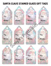 Printable Santa Claus Gift Tags | Stained Glass Santa Claus Hang Tags | Christmas Favor Tags | Printable Holiday Treat Bag Tags
