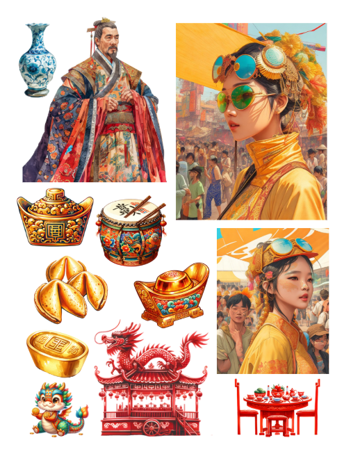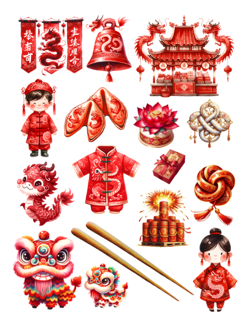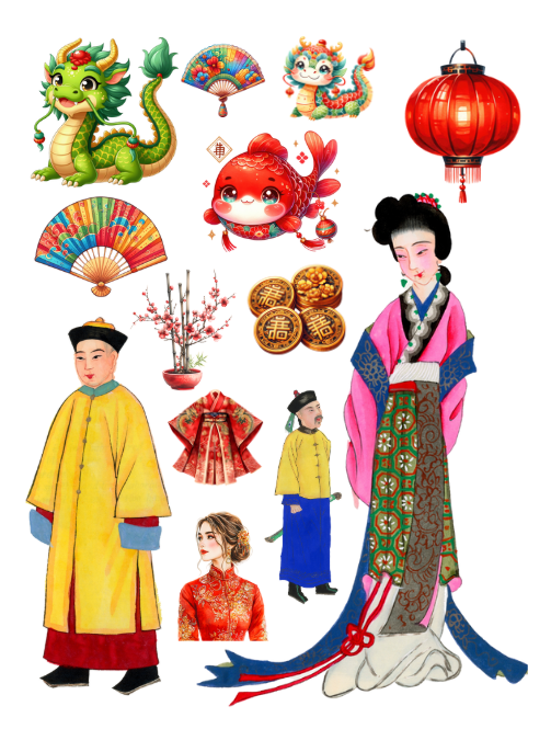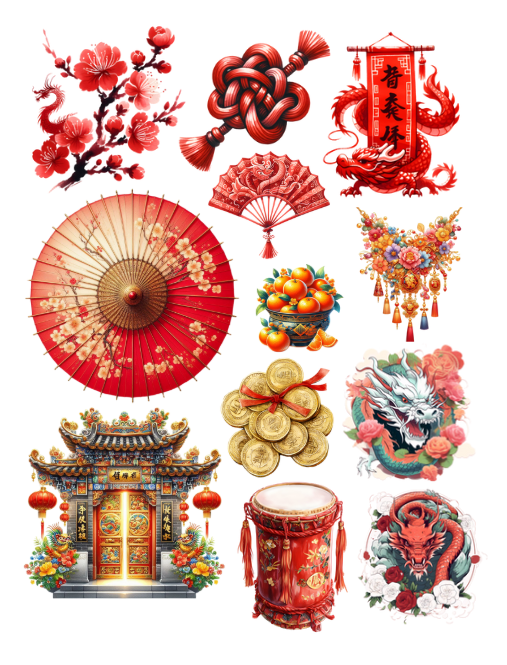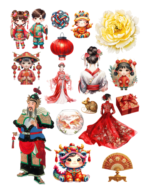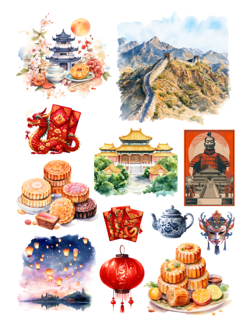 Pull out your scissors and glue and dive into the magical world of China with emperors, empresses, citizens, pagodas, sushi, Chinese food, lanterns, Chinese New Year, Moon festival, symbols, fortune cookies, fans, flowers, stamps, historical elements, lakes, dragons, Chinese astrology/zodiac and much more with this artistically beautiful clip art cut and collage book. Planners can be decorated with these beautiful Chinese scenes and elements.