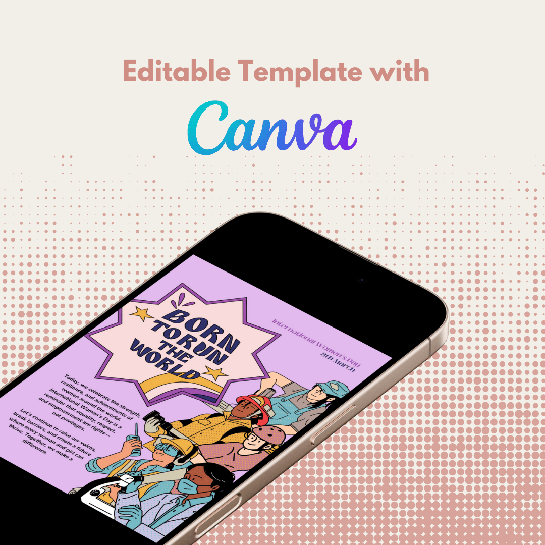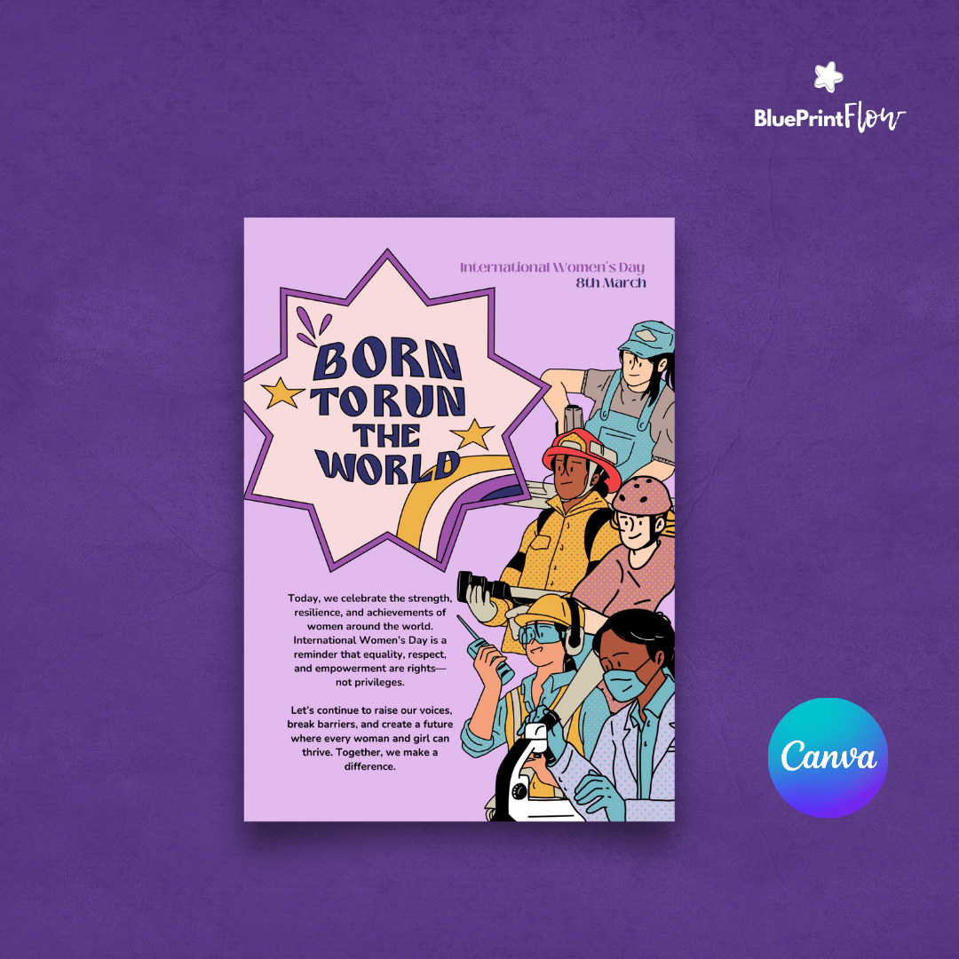Born to Run the World International Women's Day IWD Card Flyer Poster Canva Template Design