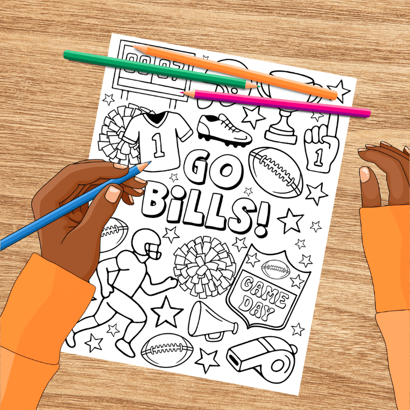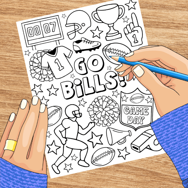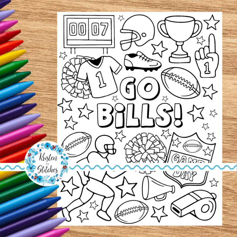 Go Bills! Football Team Coloring Page, Printable 8.5x11 Paper, PDF & PNG File, Game Day Crafts, Buffalo