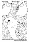 42 original drawings of the parrot family, including parakeets, budgerigars, cockatoos, lorikeets and macaws.