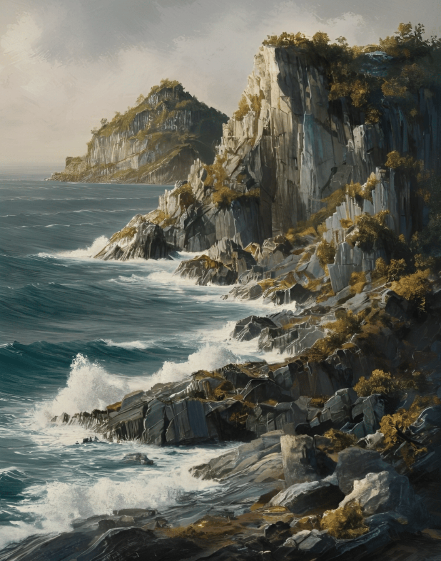 Vintage Rocky Sea Shore Current, Rocky Sea Shore, Nostalgic Maritime, Rustic Sea, Painting, Wall Art, Digital Art.