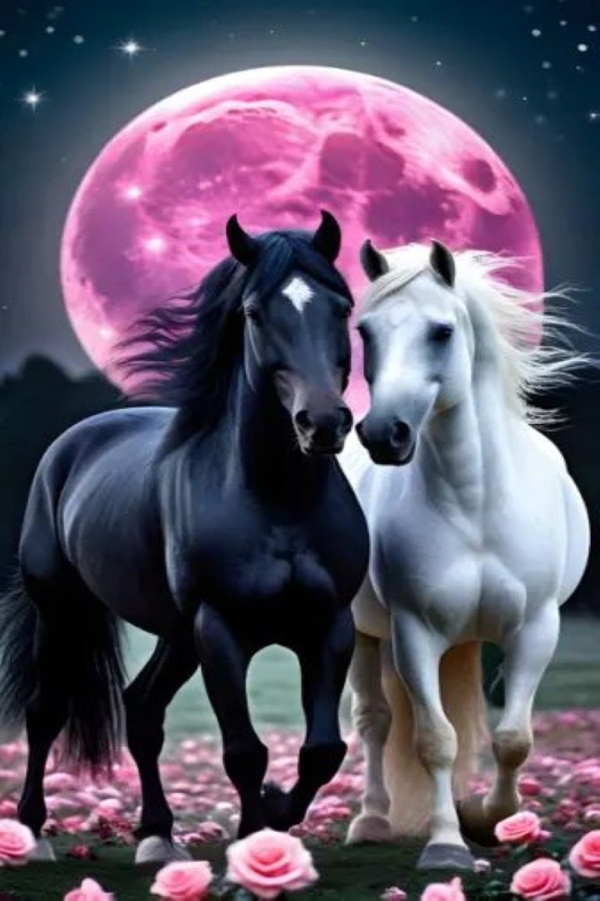 Horses Pink Moon Printable Poster