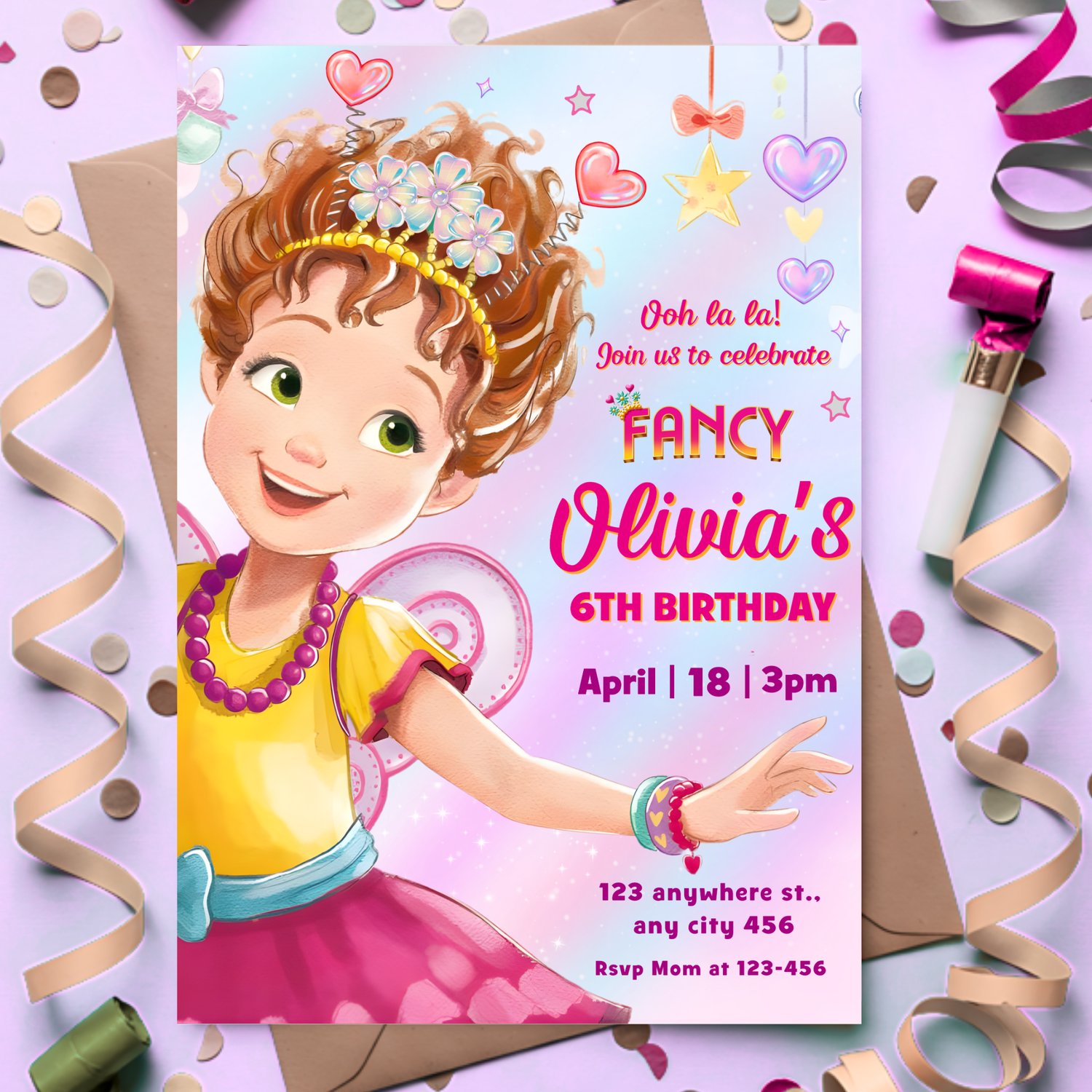 Make your little one’s birthday "Ooh La La" fabulous with this Fancy Nancy Birthday Invitation! Designed with a chic French-inspired aesthetic, this 5x7 digital invite is perfect for a glamorous tea party or a backyard birthday bash.