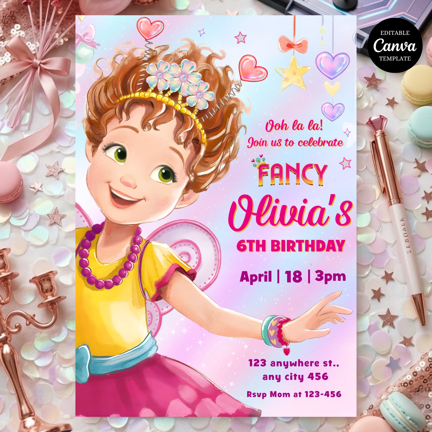 Fancy Nancy Birthday Invitation – Editable Canva Template