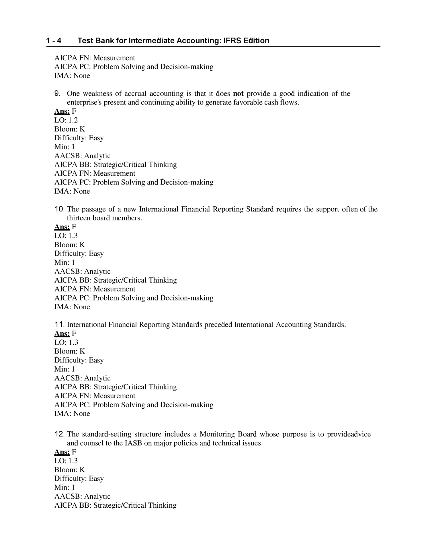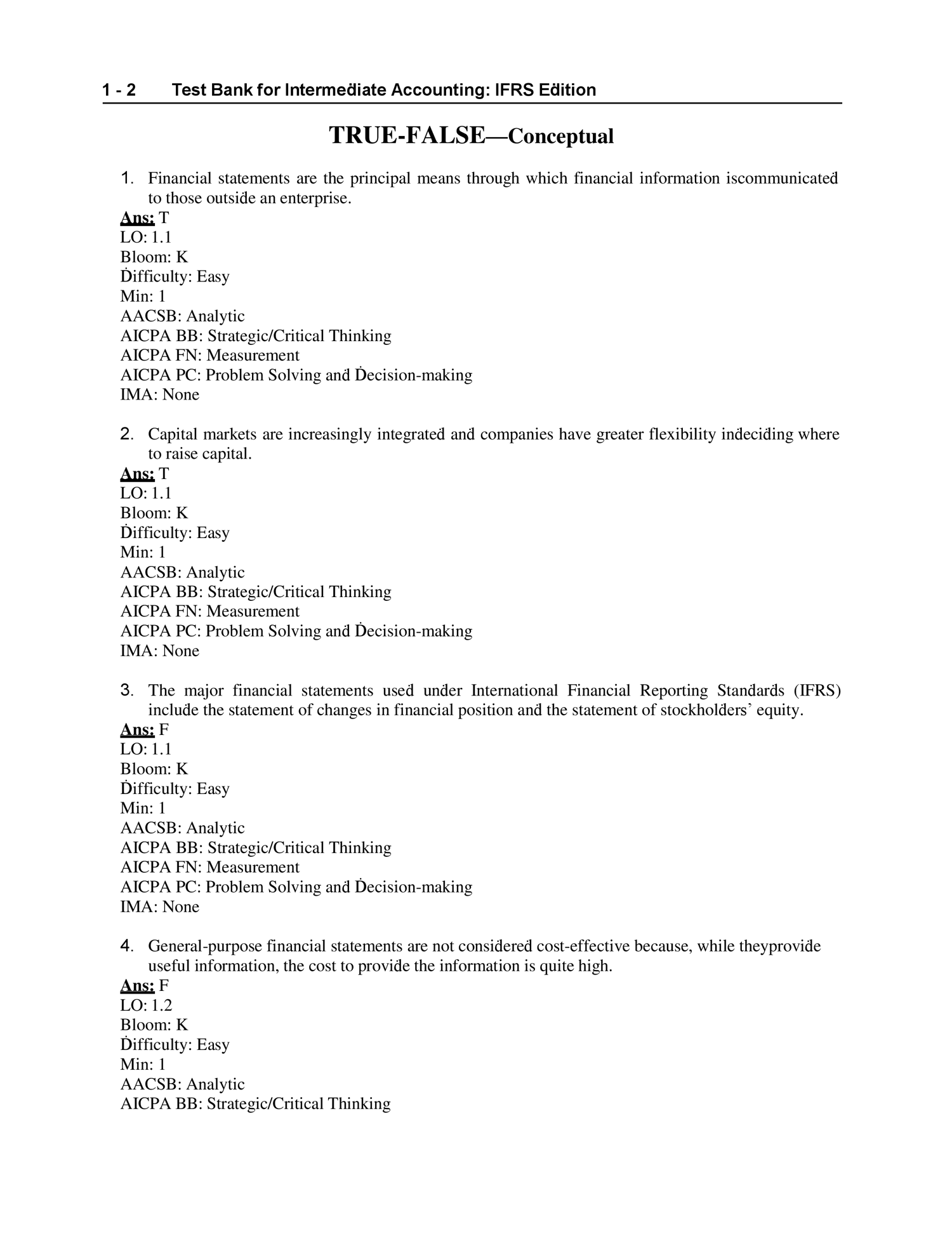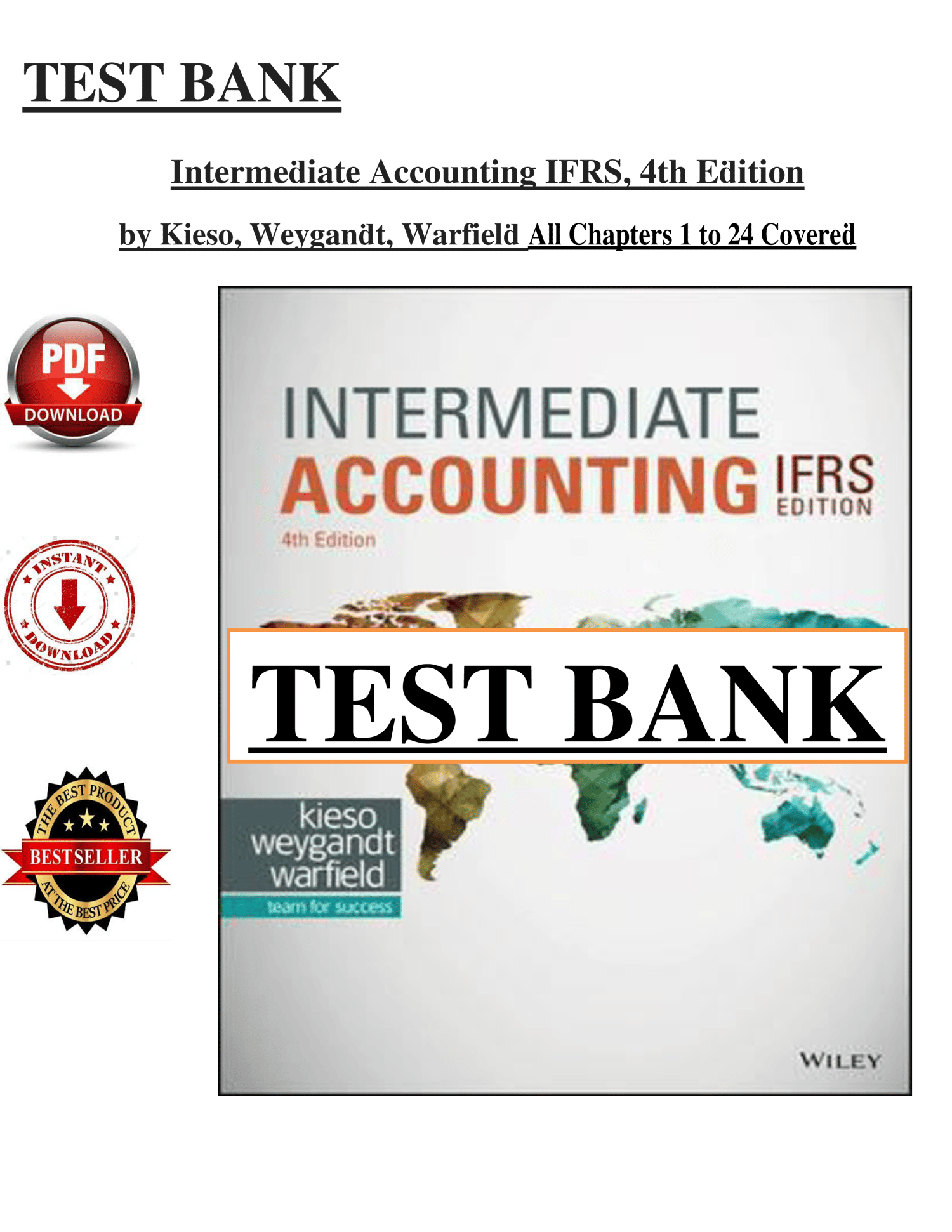 INSTANT DOWNLOAD AS PDF FILE - This document contains the complete test bank for Intermediate Accounting IFRS, 4th Edition by Donald E. Kieso and Terry D. Warfield. It includes a wide range of practice questions, multiple-choice items, and solutions covering all major topics of the textbook. The material is designed to help students prepare for exams by testing conceptual understanding and problem-solving skills in IFRS-based accounting.