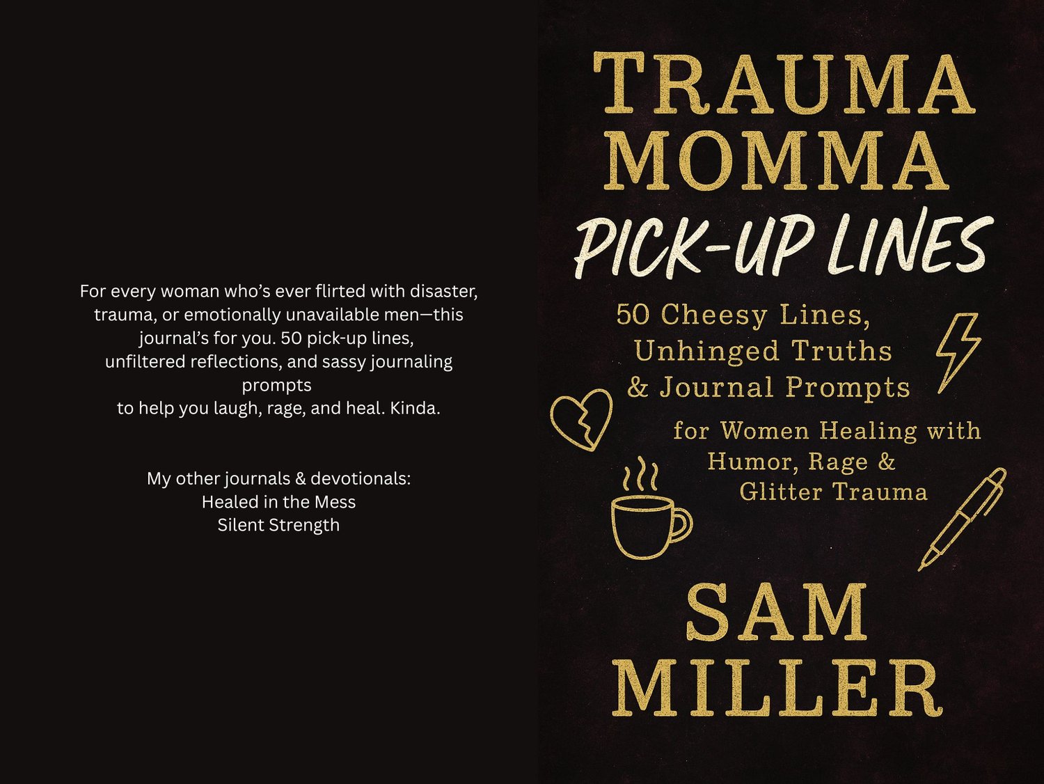 “Trauma Momma Pick-Up Lines” is an interactive eBook experience made for women healing out loud — the ones journaling between breakdowns, cracking jokes between therapy sessions, and writing their way back to life after the fire.