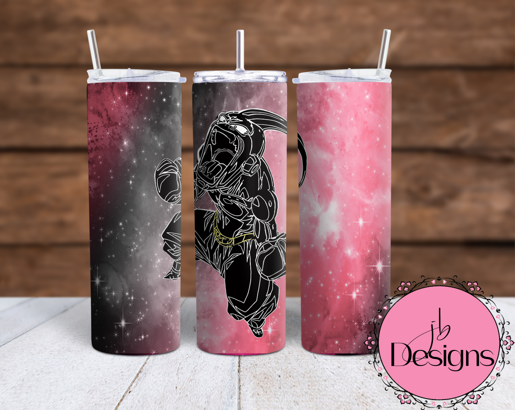 Majin Buu Sublimation Tumbler wrap 20oz 4 different pink backgrounds