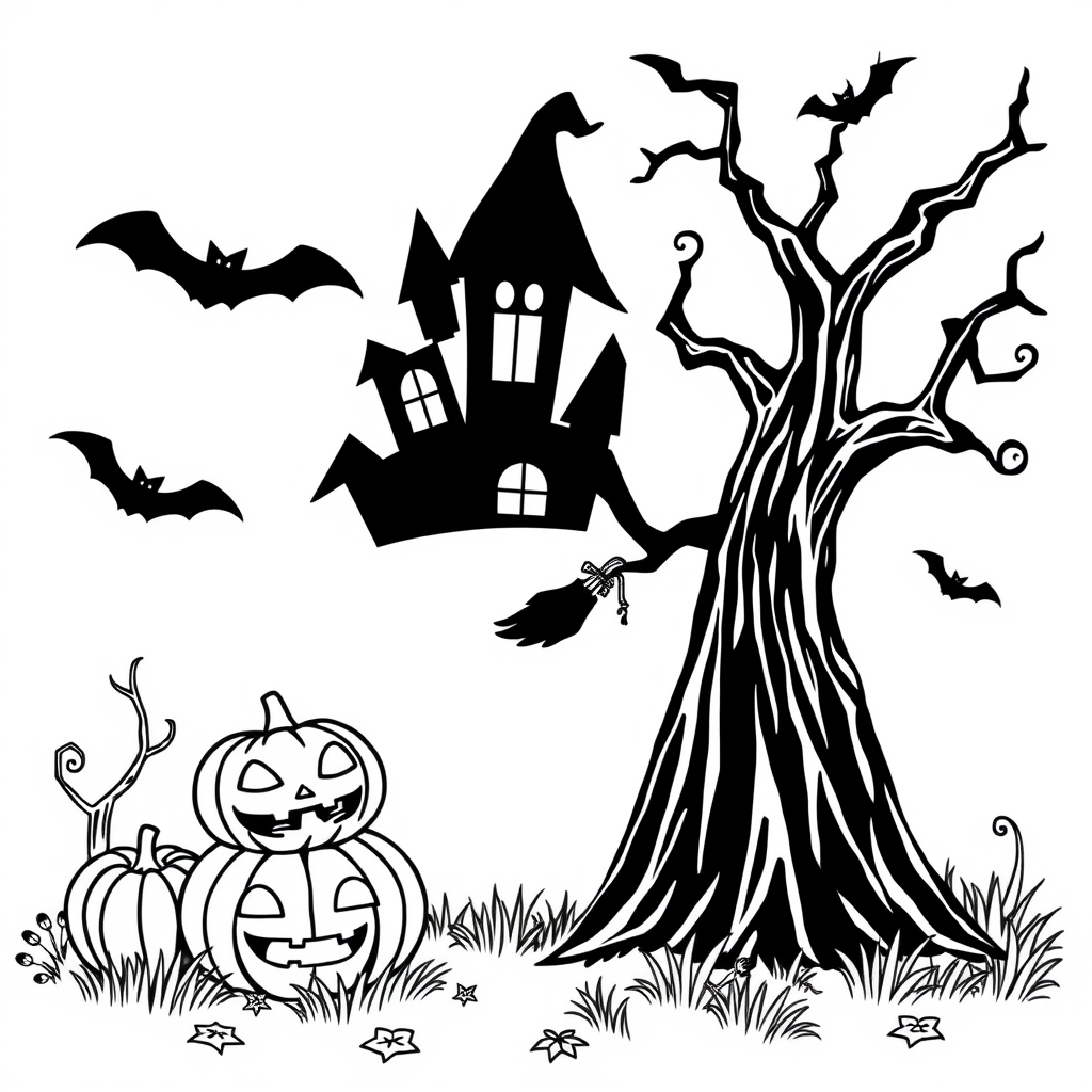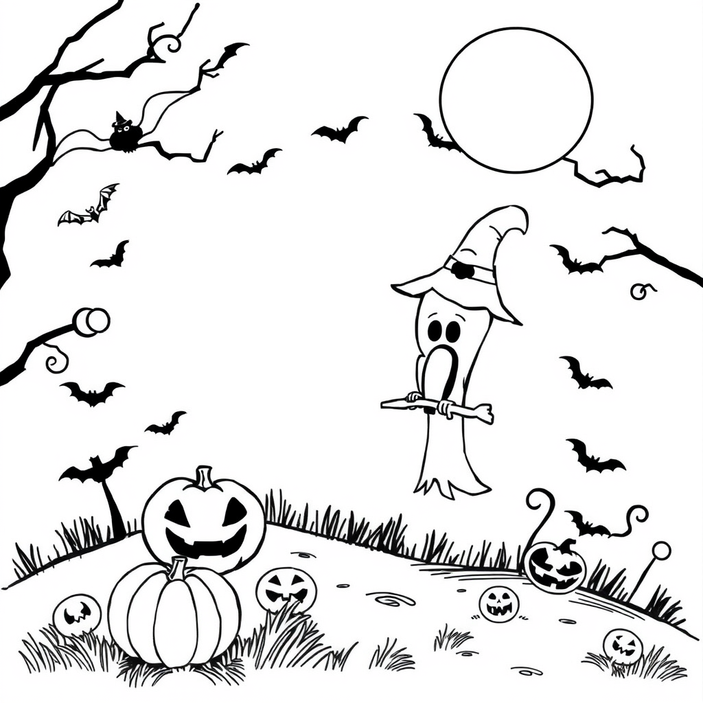 - Coloring pages featuring ghosts, pumpkins, and black cats