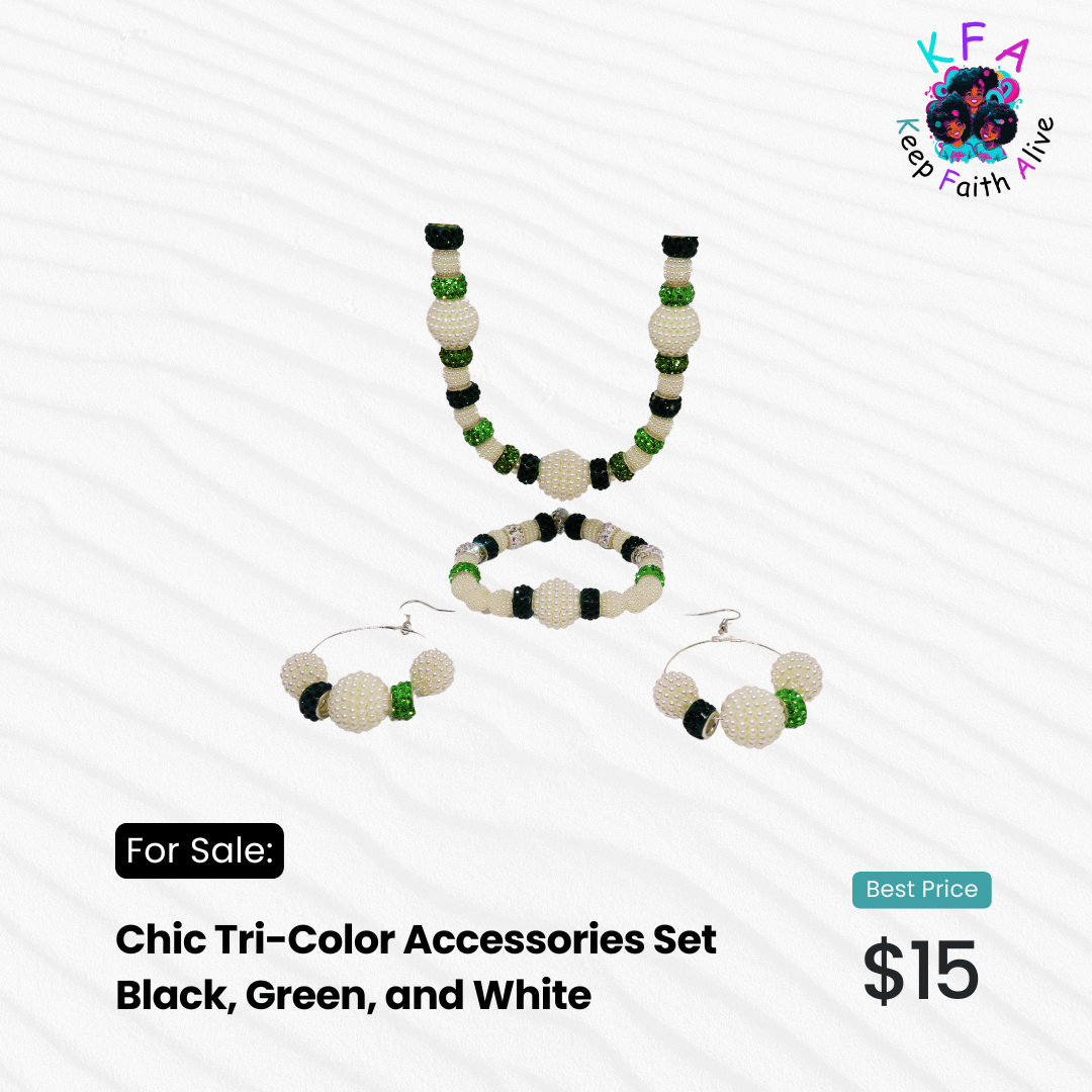 Chic Tri-Color Accessories Set Black, Green, and White