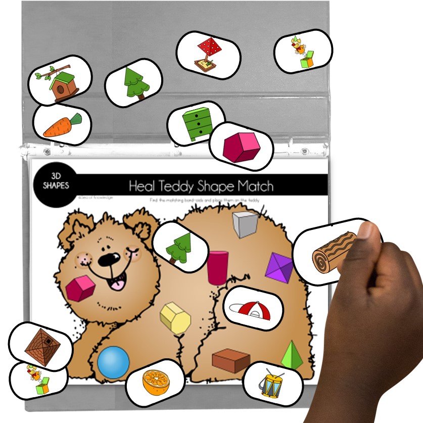 Heal Teddy Shape Match | 2D & 3D Shapes Busy Book Binder