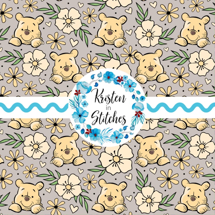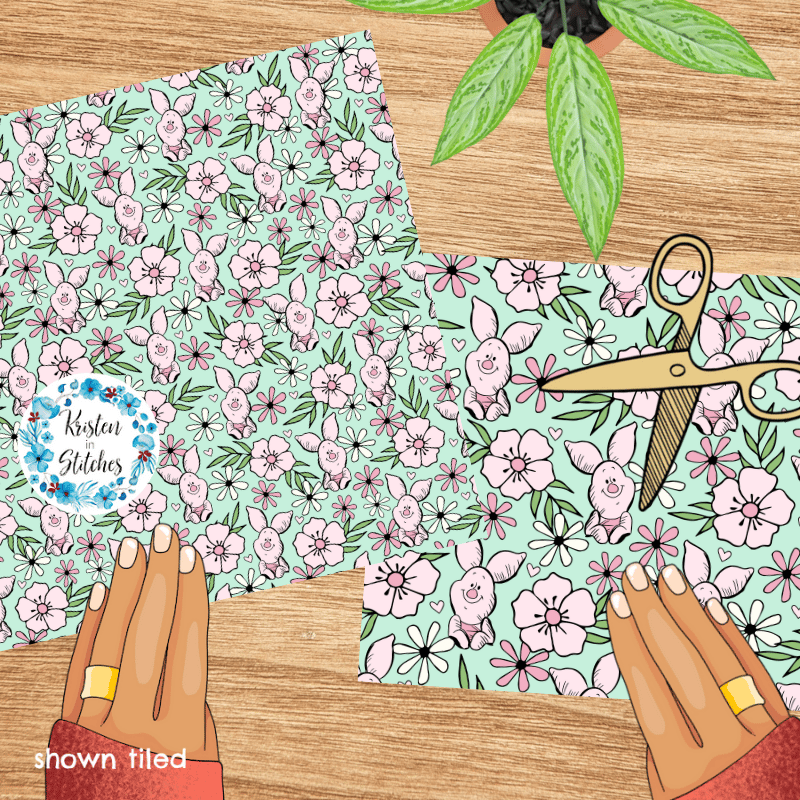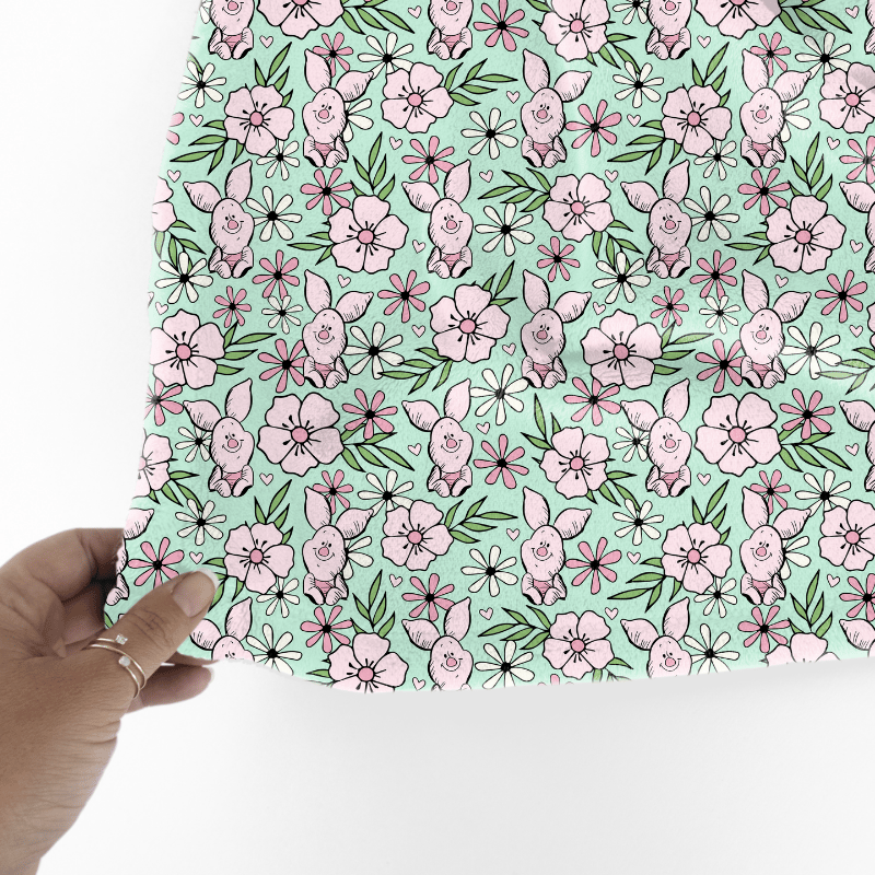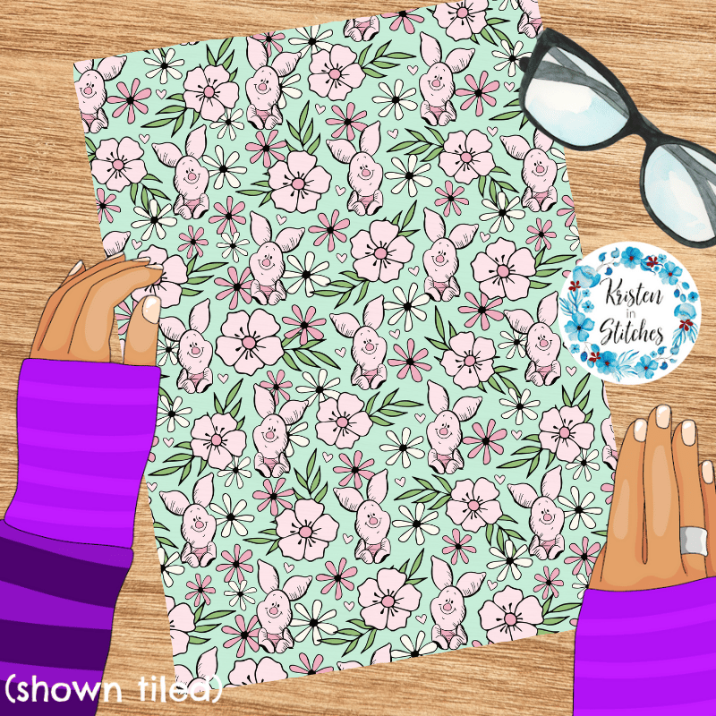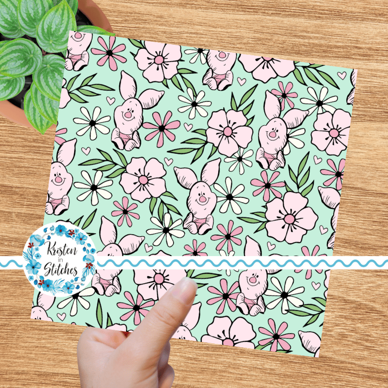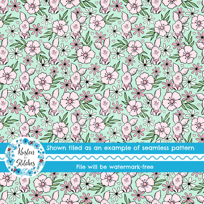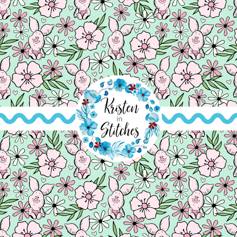 Piglet Floral Seamless Pattern, Classic Winnie the Pooh Nursery, Mint Green
