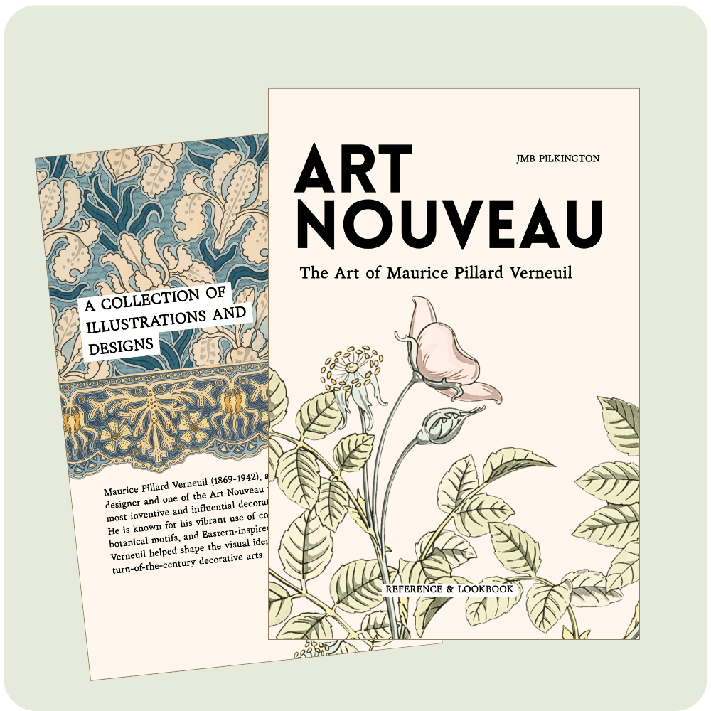 Celebrate the elegance and innovation of the Art Nouveau era art with this reference collection of artwork by Maurice Pillard Verneuil, one of the movement’s most inventive and influential decorative artists. Known for his vibrant use of color, stylized botanical motifs, and Eastern-inspired designs, Verneuil helped shape the visual identity of turn-of-the-century decorative arts in France and beyond.