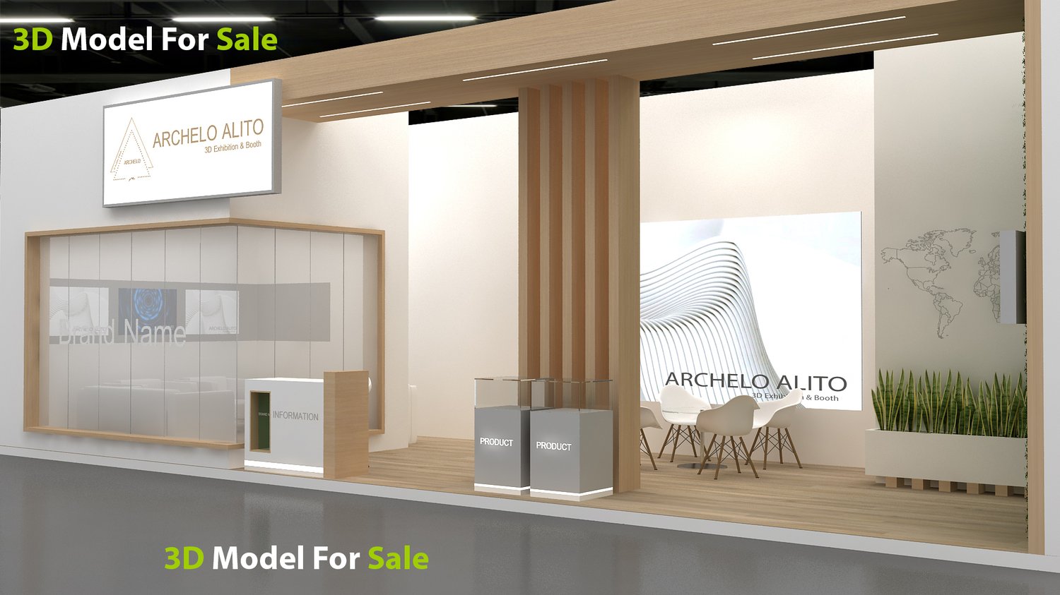 include design all necessary area in Exhibition and Booth Such as Vip and Storage and Counters and also Stand for productsFormat: 3DsMax (all version from 2016) / FBX /OBJ/