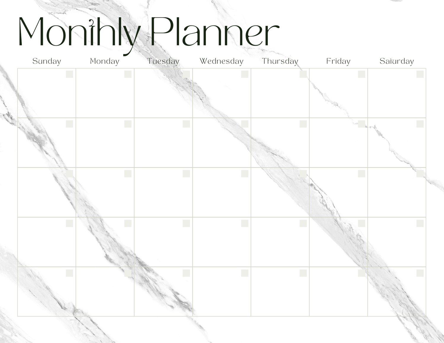 Planifiez votre mois avec clarté et harmonie grâce à ce Monthly Planner au design marbré, conçu pour vous aider à structurer vos objectifs tout en gardant une touche d’élégance.