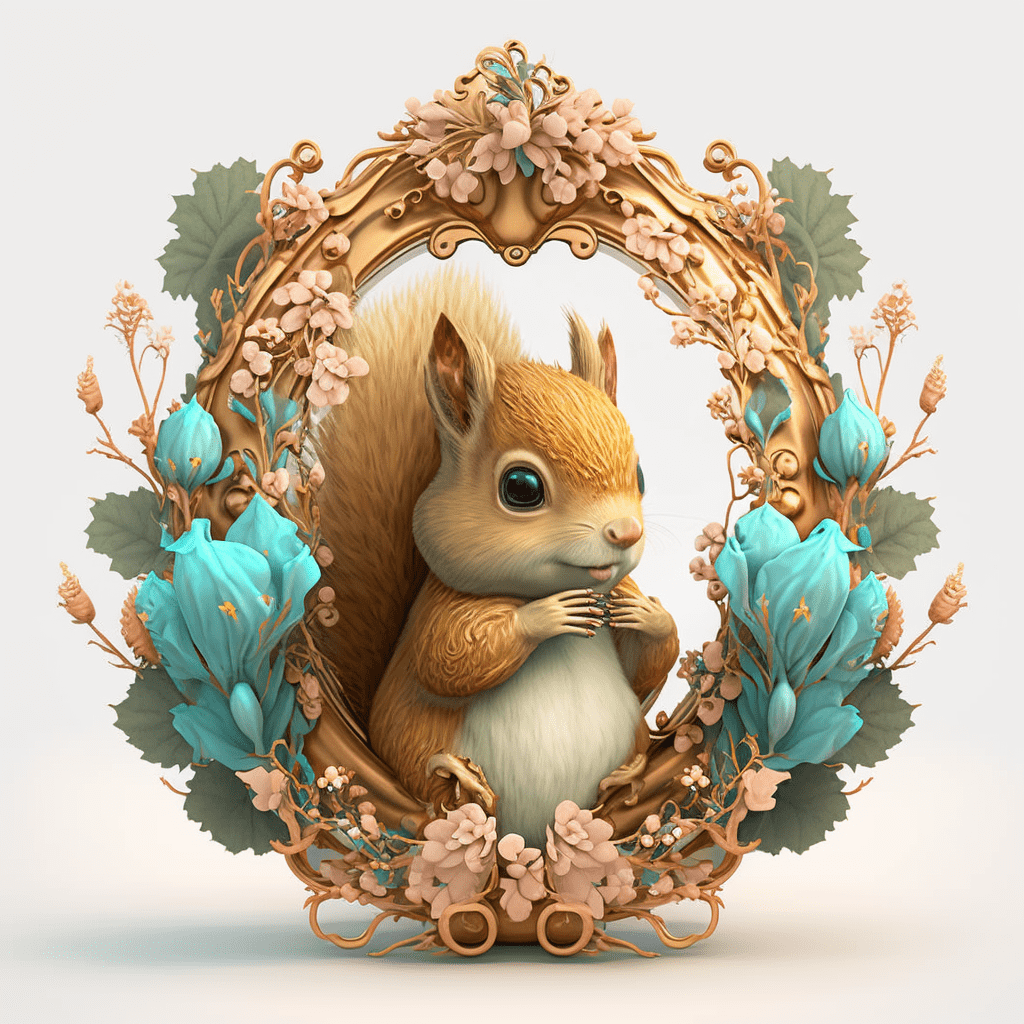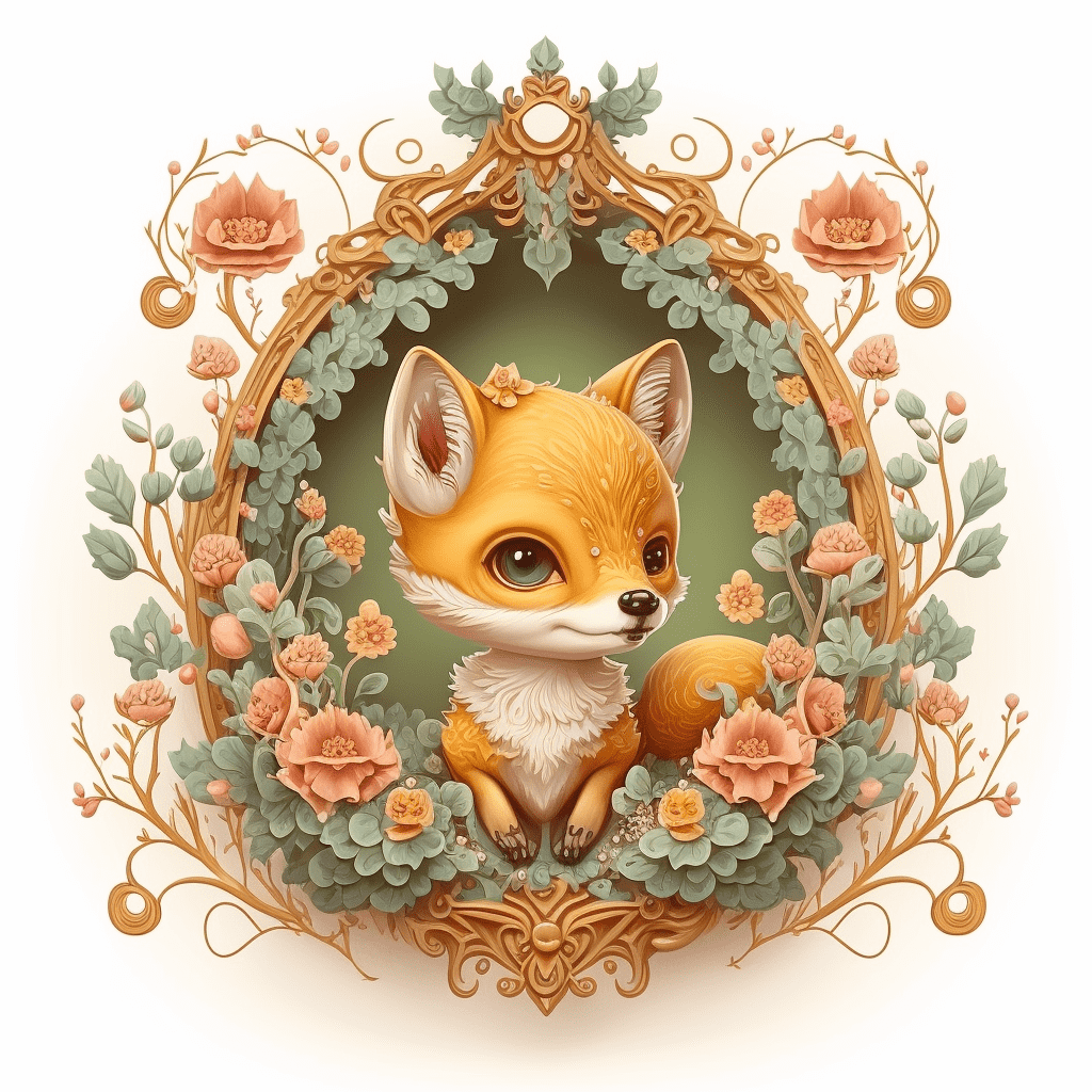Woodland Baby Animals in Flower Frame FREE Midjourney Prompt
