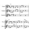 As well as the version for three violins, I have also included a version for string quartet. The string quartet version comes with individual instrument parts. As well as two violins, viola and cello, I have included a violin 3 part (same as viola part but in treble clef), and a version of the cello part transposed for viola. This enables the music to be used by a wide variety of groups.