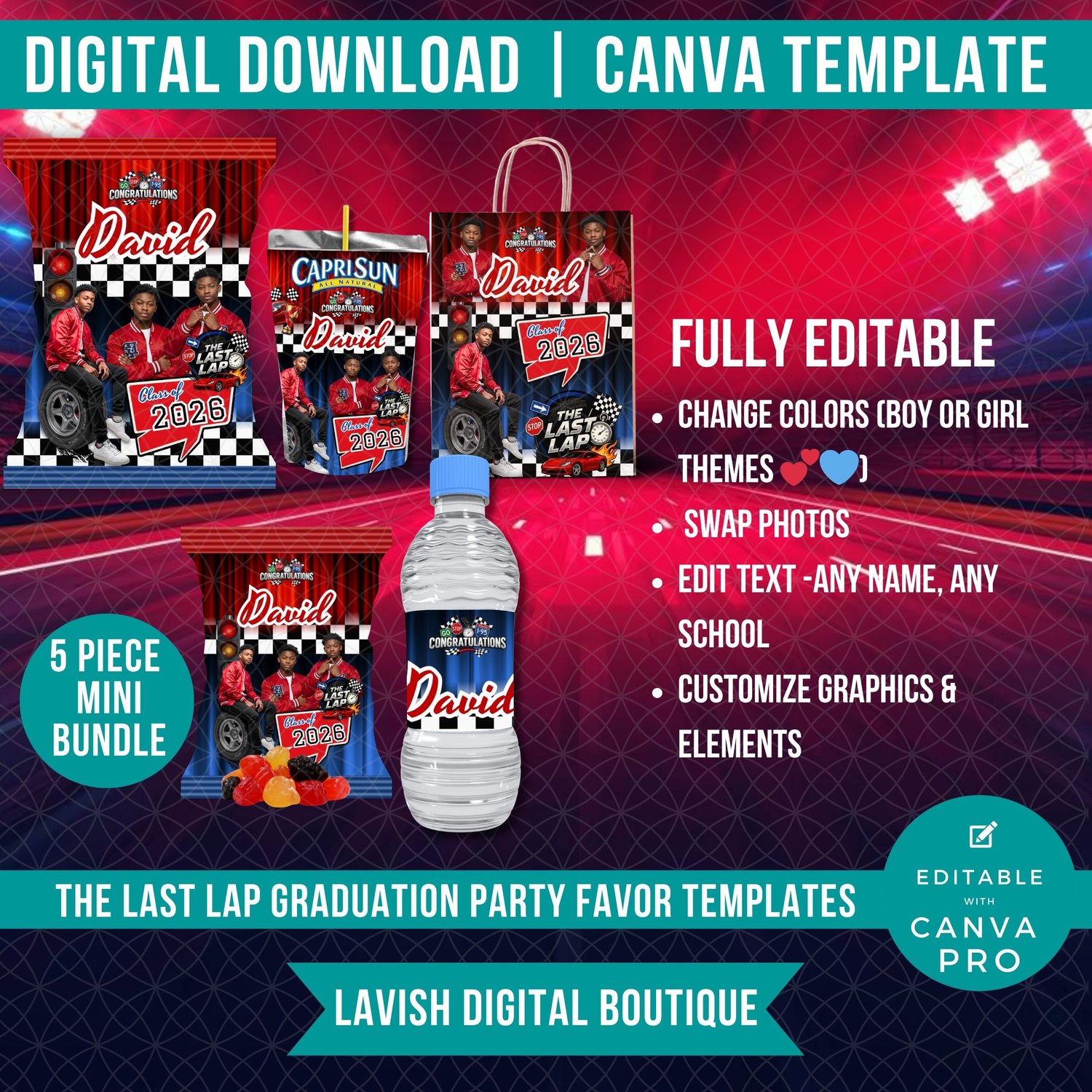 Last Lap Party Favor Mini Bundle, Final Lap, Final Quarter, Grad Printable Treat Templates, Canva Templates, Instant Download
