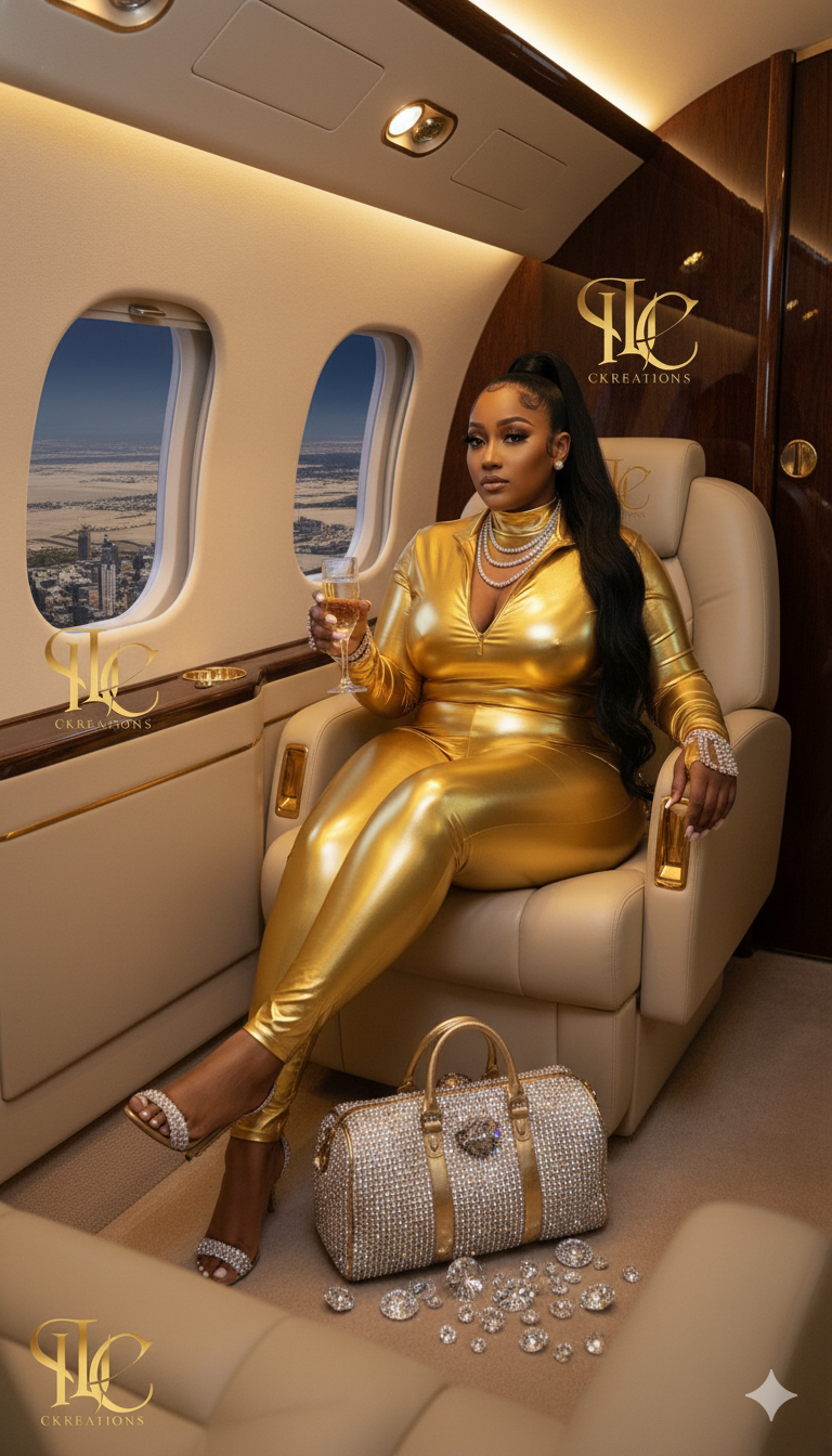 Step into a cinematic fantasy of luxury and power. This exclusive 3-prompt collection follows a thick, curvy heroine through a golden heist adventure β from the casino arrival to the vault, and finally to her flawless escape in a private jet.