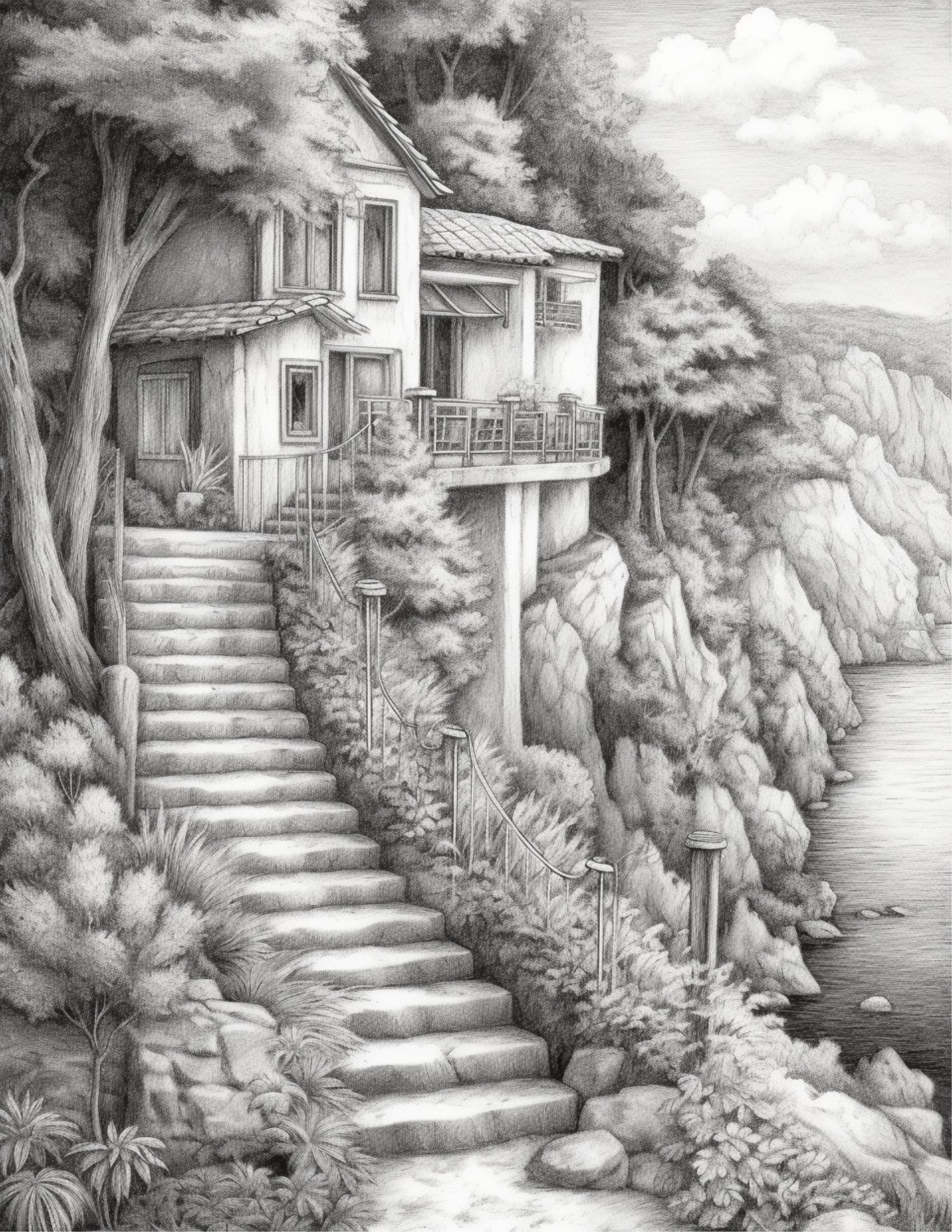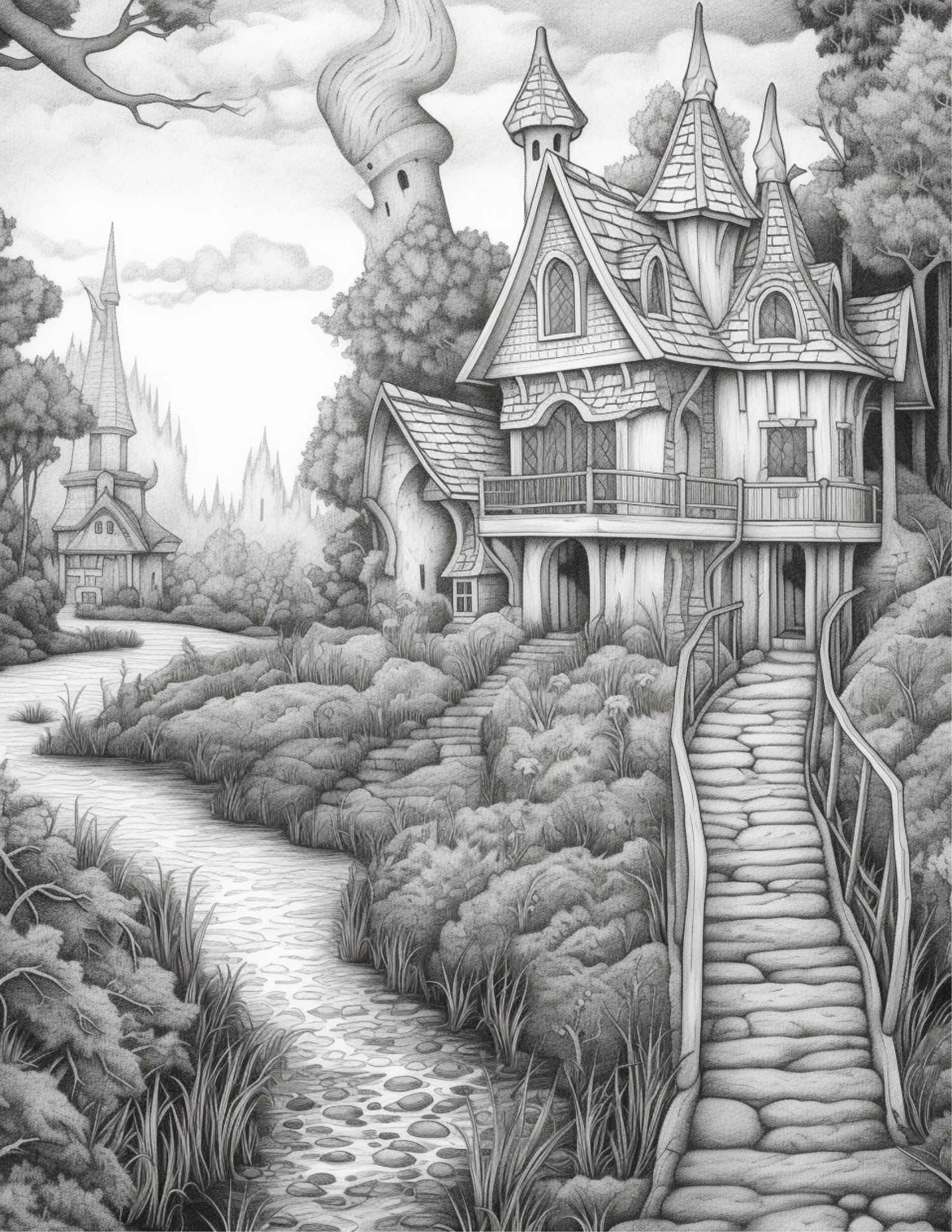 - Intricate Designs: Dive into 200 beautifully crafted pages showcasing intricate boho-style landscapes. Each illustration invites you to explore a vibrant world filled with charming houses, lush nature, and artistic elements that inspire your creativity.