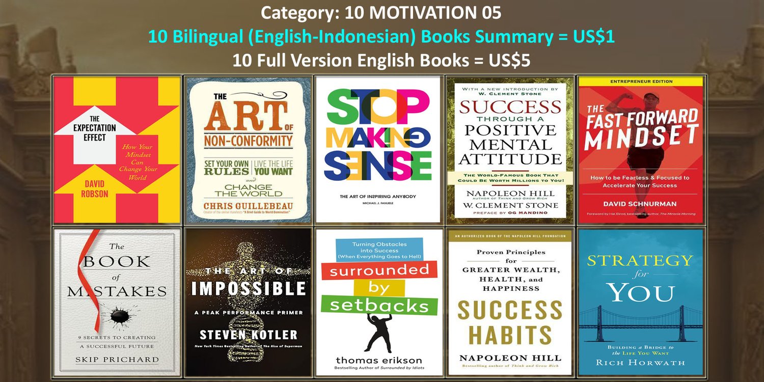 · Untuk 10 buku summary dalam 2 bahasa (English-Indonesian), hanya perlu 1 dollar saja, atau Rp.16.000,-