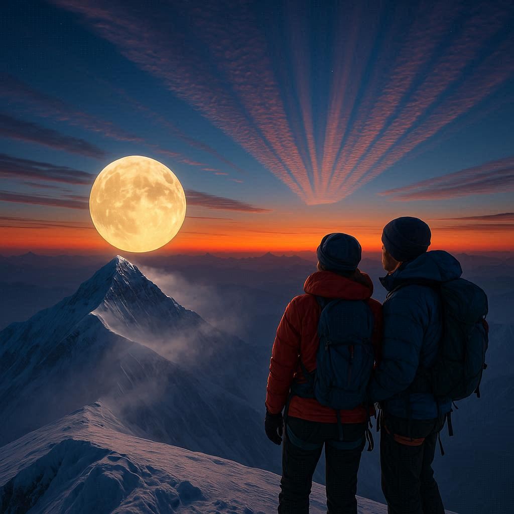 The Mid-Autumn Festival moon on August 15th will be exceptionally bright. I'm sure a significant number of people around the world will be admiring it today! If you're viewing the moon from land, the atmosphere around you will certainly not be comparable to that at the summit. This is because the low ambient temperature, the large moon, and the strange surroundings of the mountains make it impossible to distinguish between reality and illusion.
