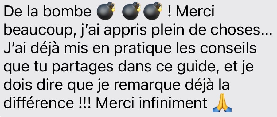 Après avoir renseigné tes informations, tu recevras ton Guide directement dans ta boite mail.