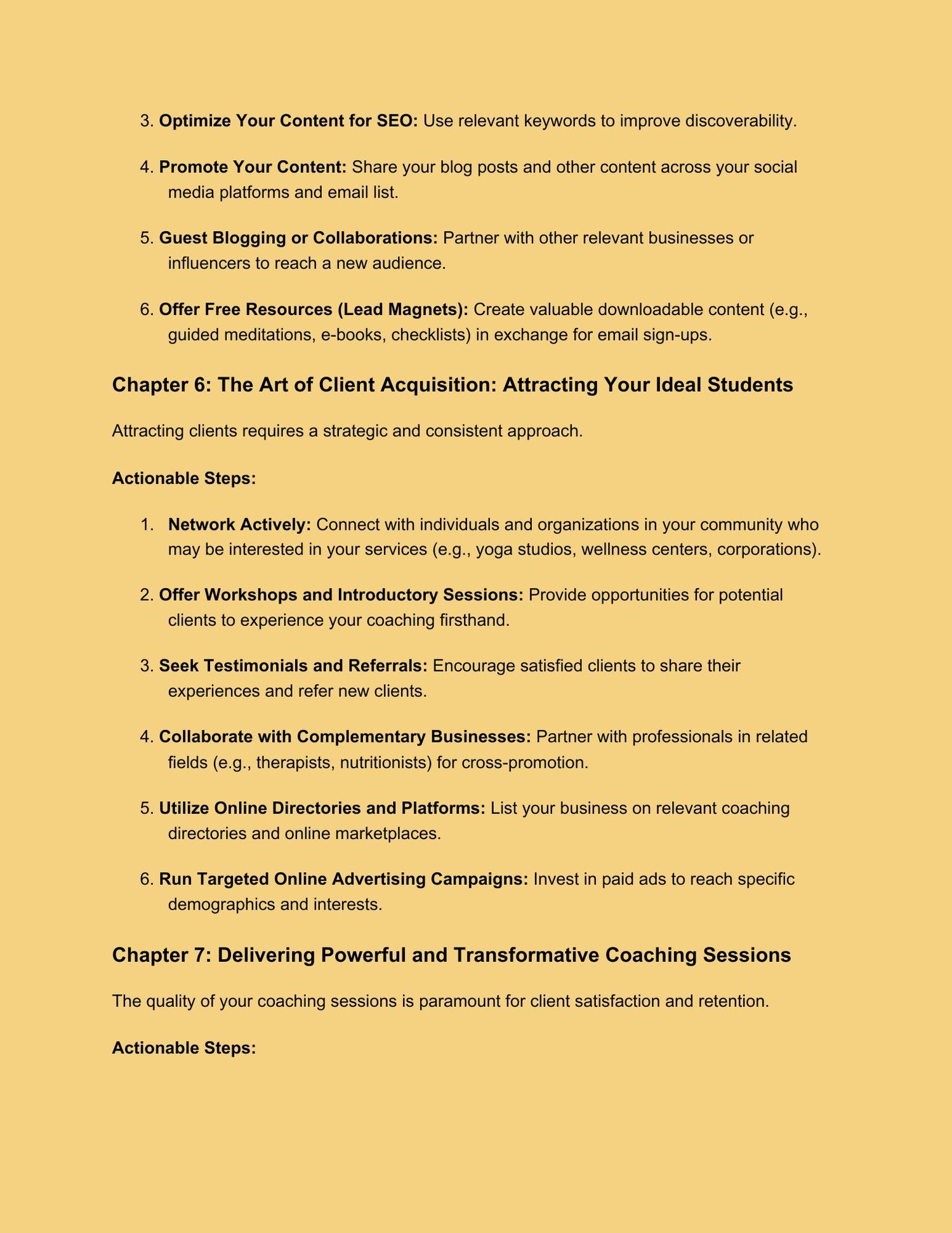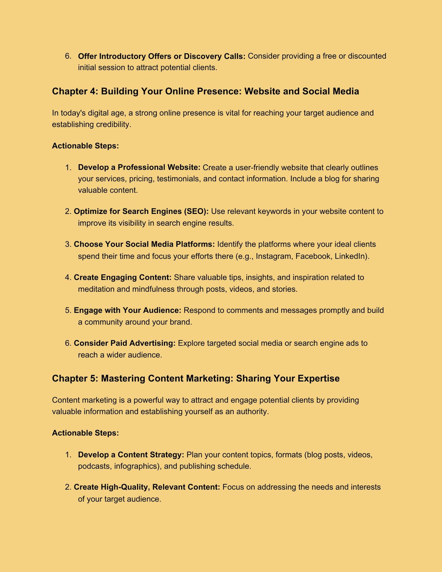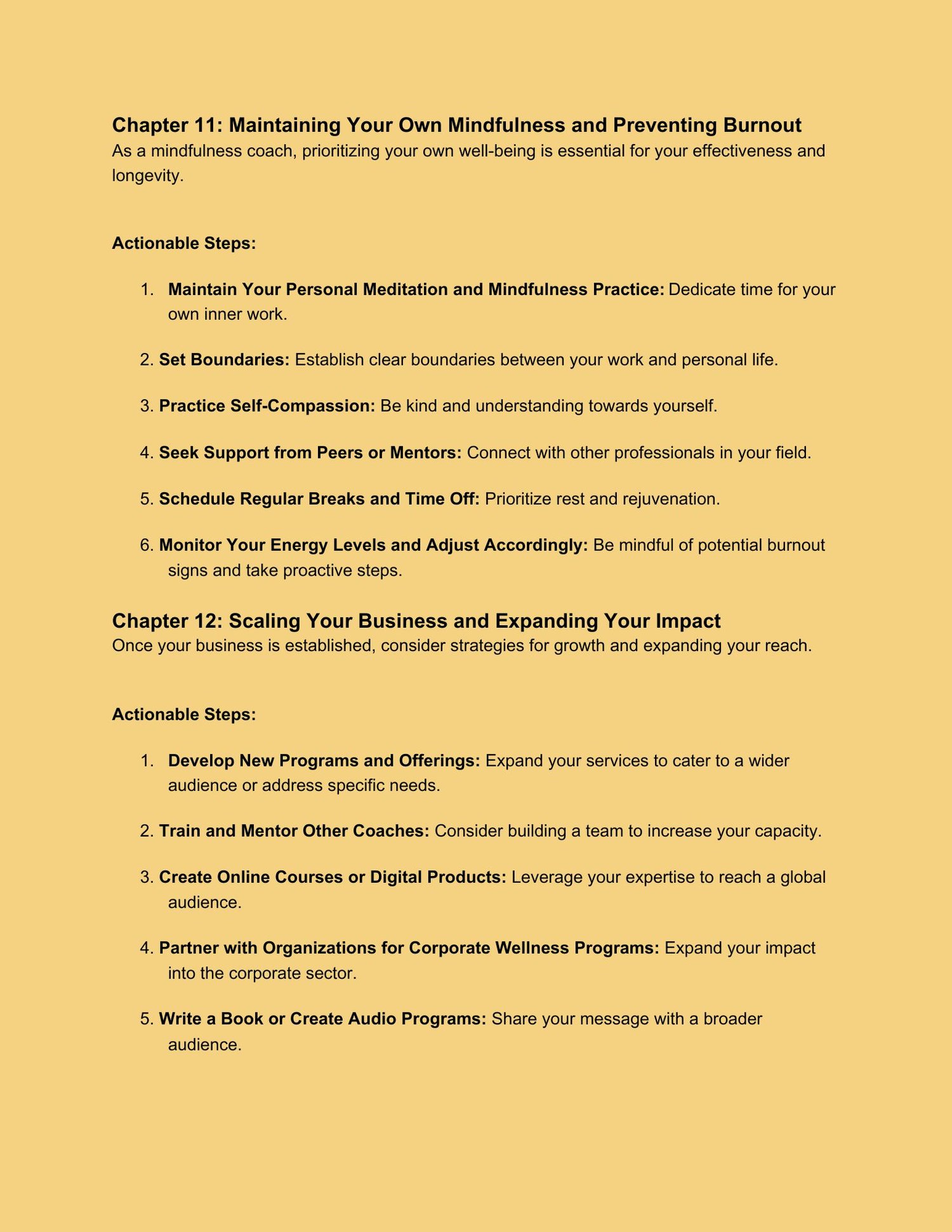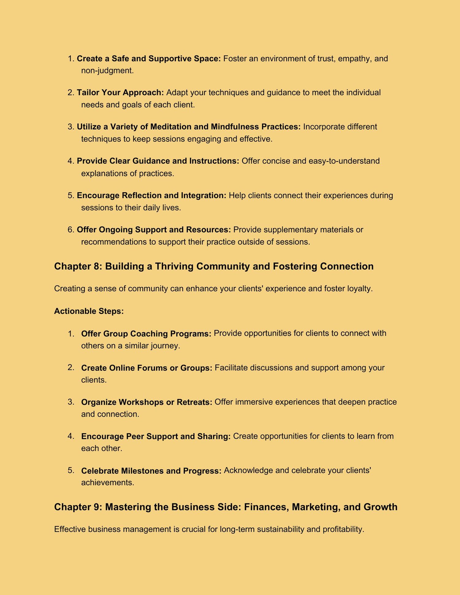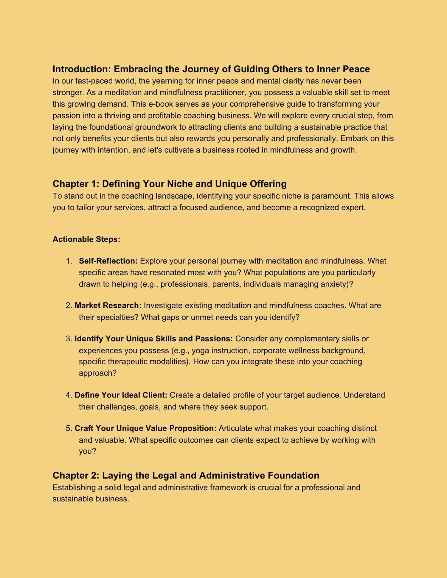 "Sacred Service & Abundance" is your essential road-map to confidently launch and cultivate a prosperous meditation and mindfulness coaching business. This isn't just another dry business guide. It's a deeply engaging and persuasive companion, infused with the very principles you teach, leading you step-by-step towards creating a business that is both soulfully fulfilling and financially rewarding.