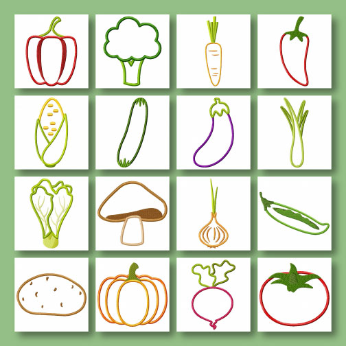Machine embroidery design bundle, vegetable applique, INSTANT DOWNLOAD