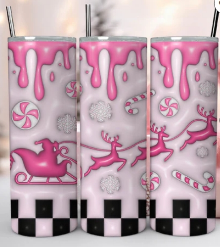 3D Inflated Pink reindeer Christmas Tumbler Bundle 1