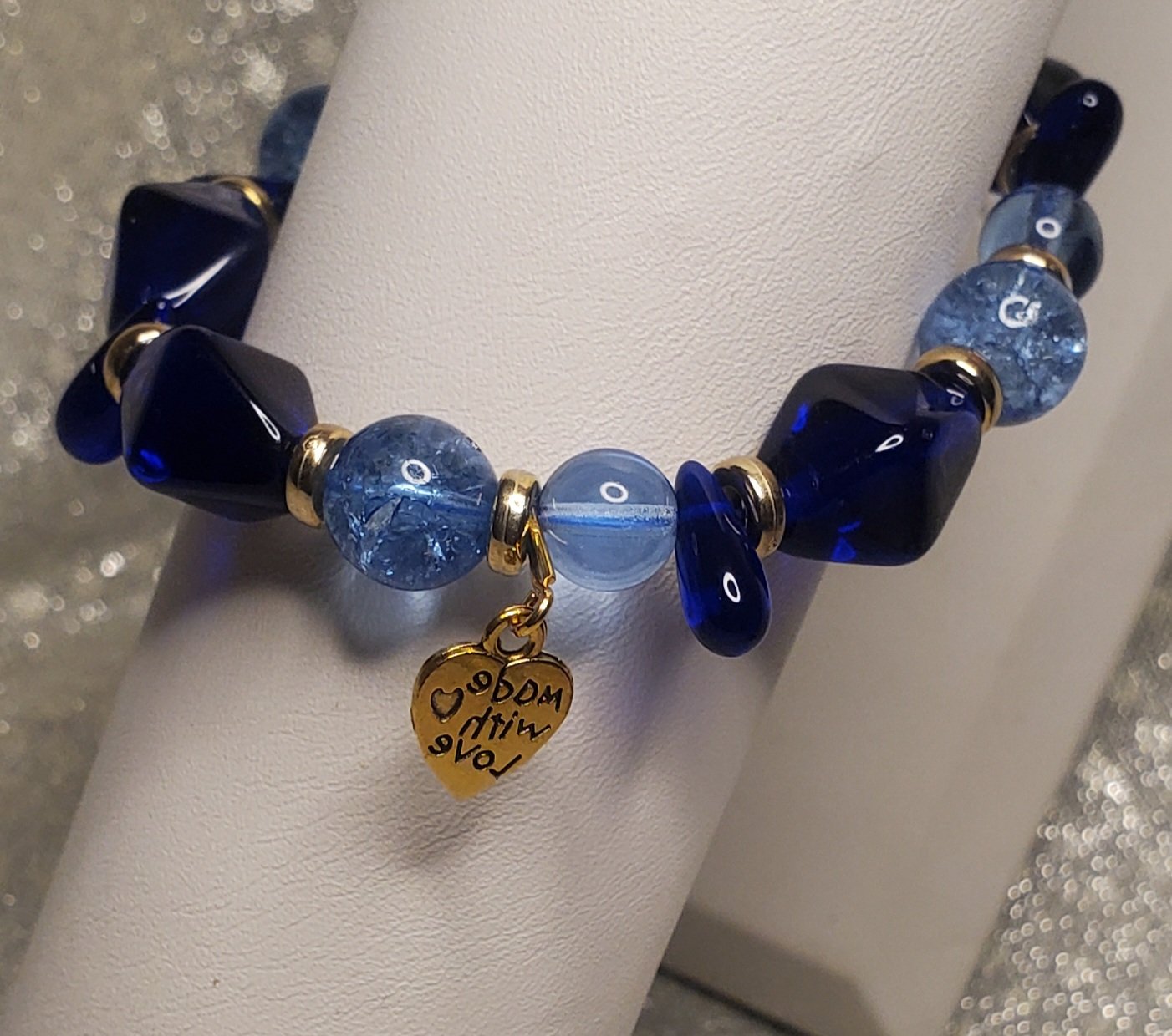 📦Blue Mix Glass Bead Charm Bracelet #BMCB5