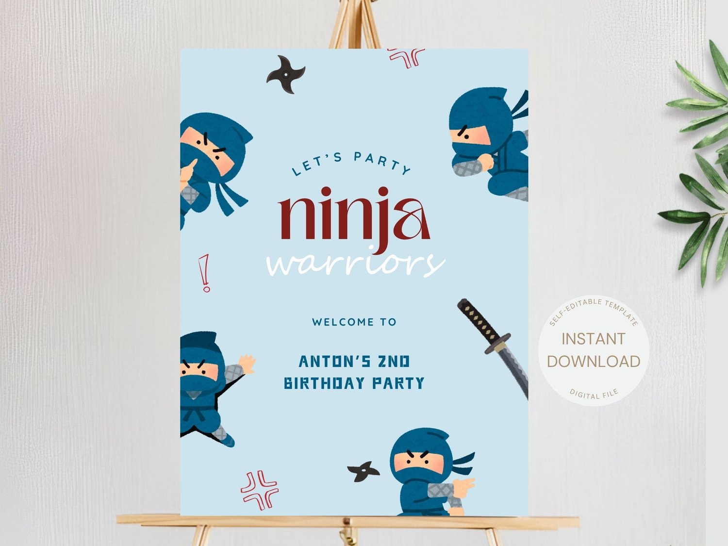 Elevate your upcoming celebration with this Ninja Themed Party Signs!