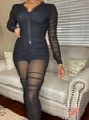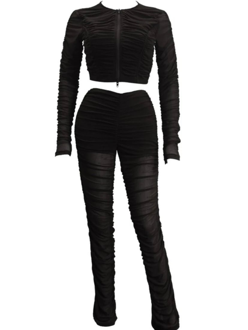 Ruched mesh two way zipper lounge set.