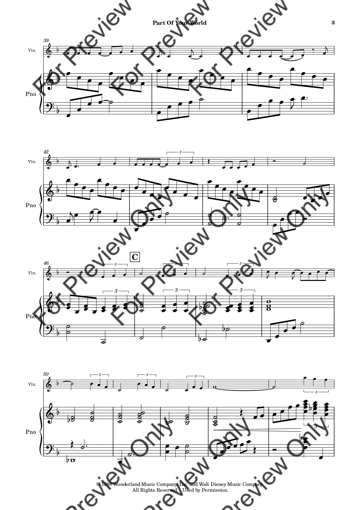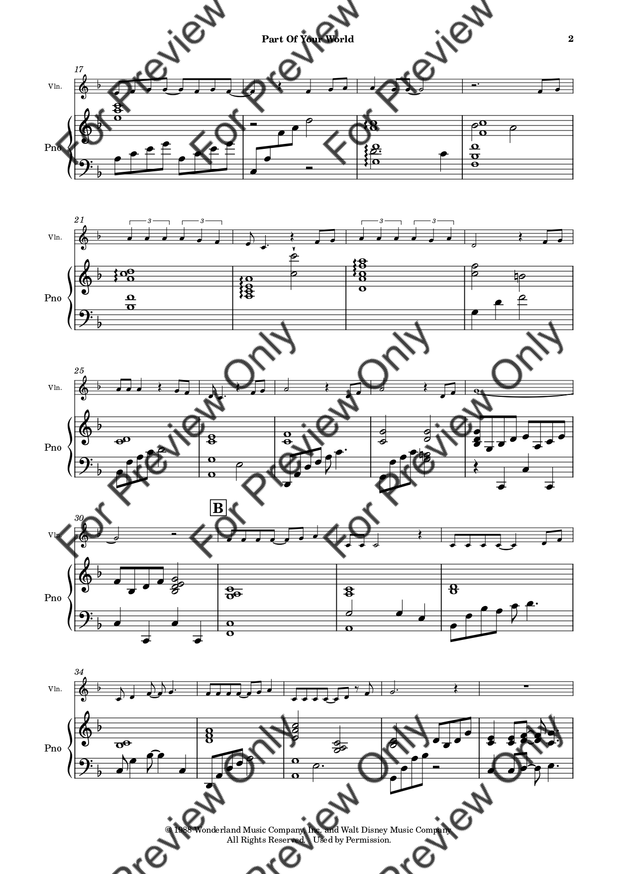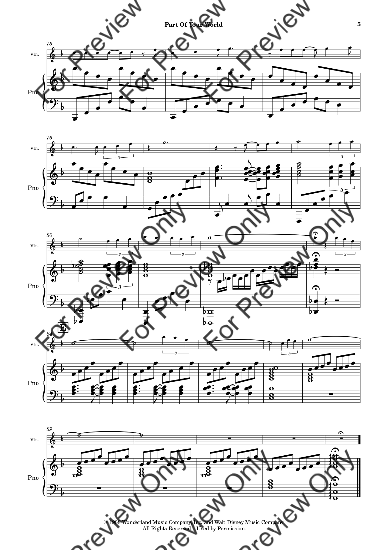 Part Of Your World from The Little Mermaid by Alan Menken. Arrangement for Violin and Piano. With Full Score and Individual Parts. Have fun!
