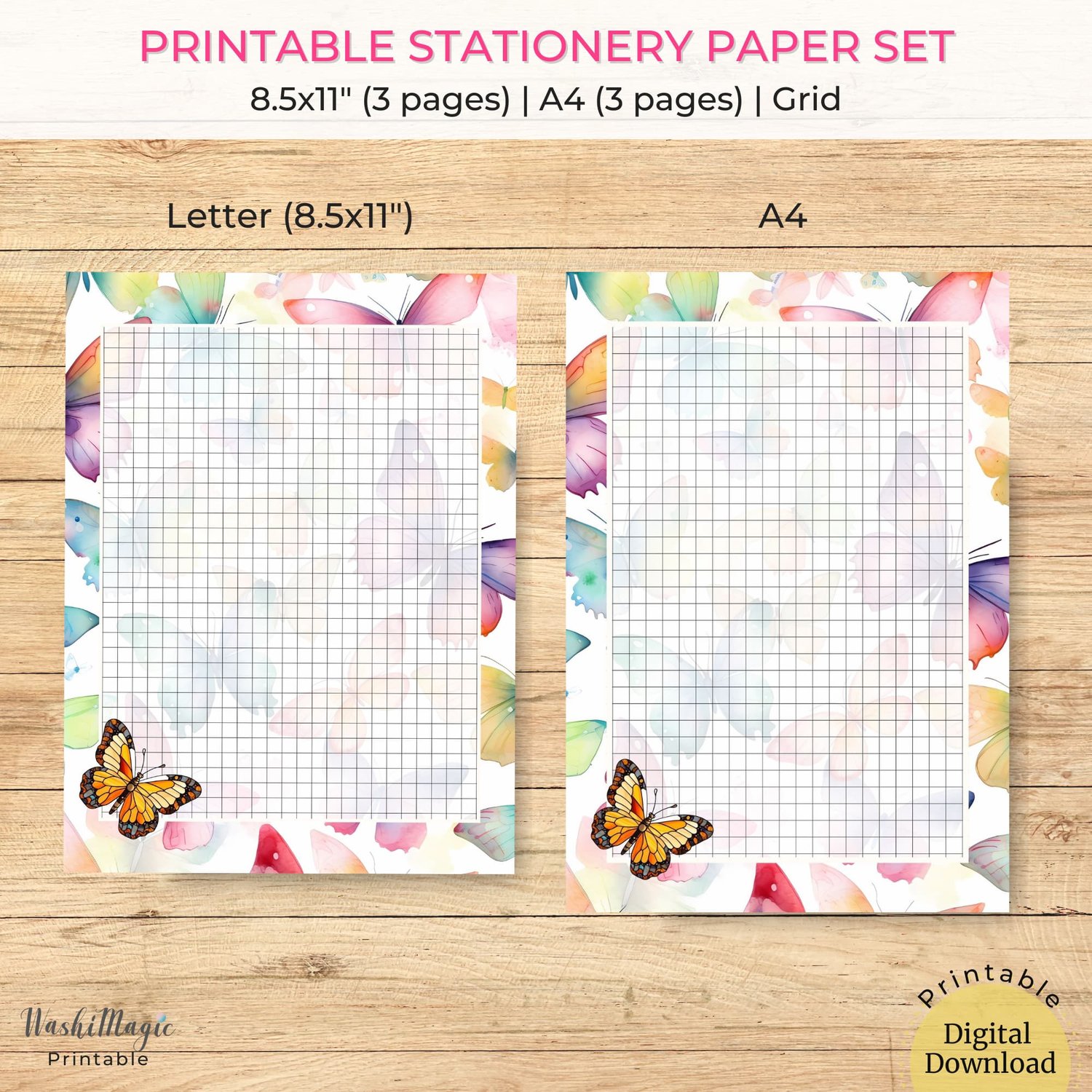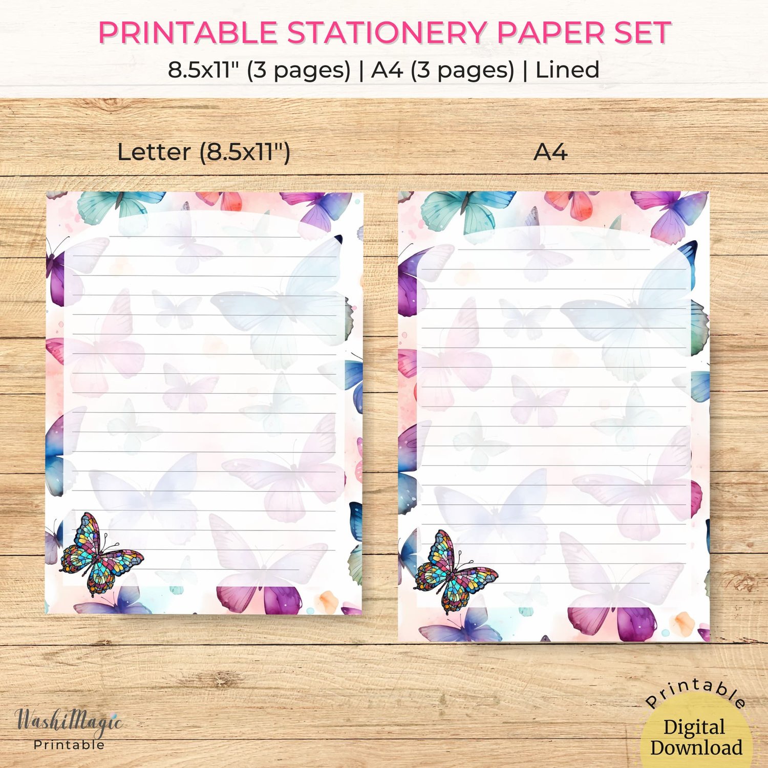 Butterfly-Themed Printable Stationery Paper Set of 3