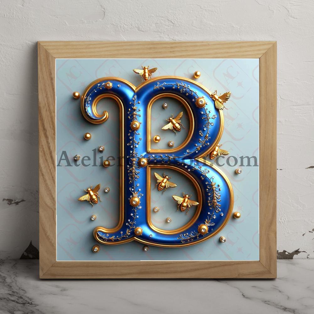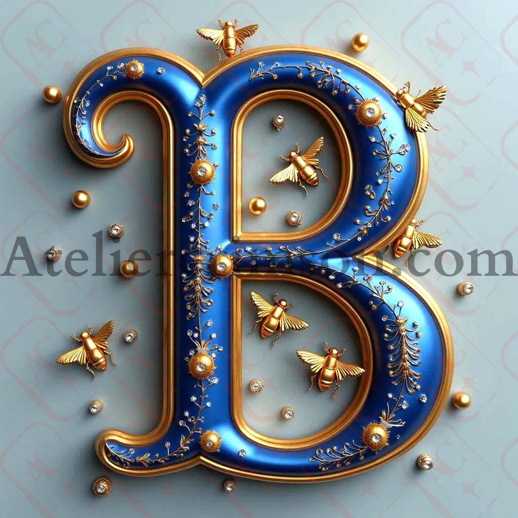 The letter B royal blue bees Download Now this high quality AI-generated image, perfect for adding a touch of tranquility and creativity to any space.