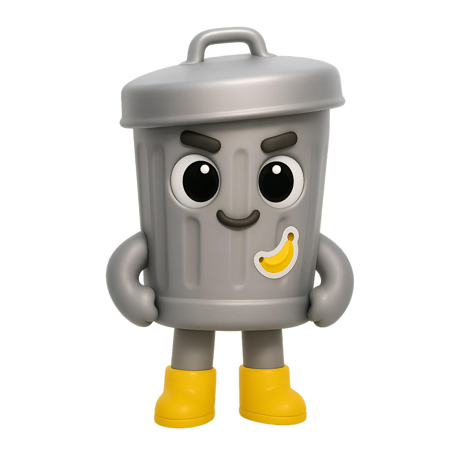 Cute 3D Cartoon Trash Can Character with Transparent Background