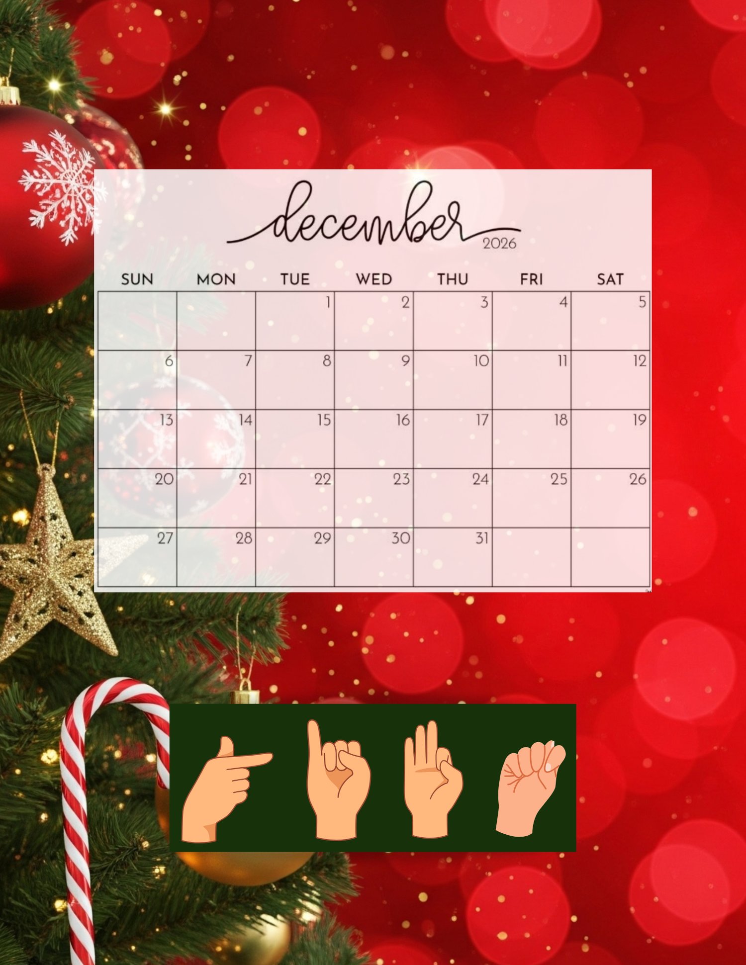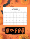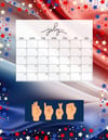 This printable 12-month calendar features unique seasonal backgrounds and American Sign Language words for each month — designed with care, Deaf-created, and perfect for anyone who loves ASL, Deaf culture, or meaningful visual art.
