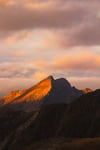 Je venais de gravir mon premier sommet de nuit, guidé seulement par ma frontale, encore engourdi par le froid et l’effort. Et au moment où j’ai atteint la crête, les premières lueurs du jour ont glissé sur la chaîne de montagnes. Une seule se détachait déjà : un pic acéré, embrasé d’orange sur sa face gauche, tandis que sa face droite restait plongée dans la nuit. Tout autour, le paysage était encore sombre. Lui seul recevait la lumière. Devant cette scène, j’ai eu l’impression de voir le gardien de la montagne s’éveiller — et c’est là que j’ai pris cette photo.