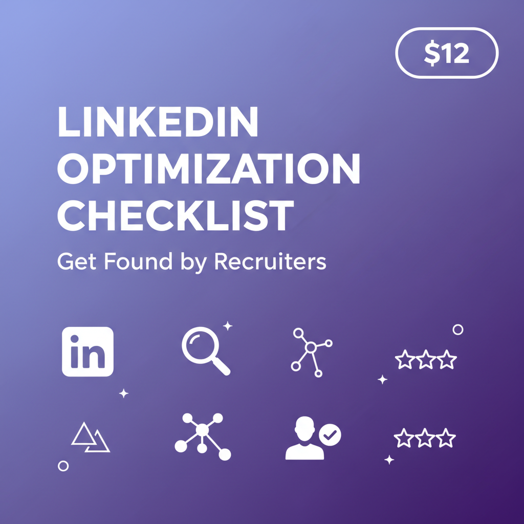 The LinkedIn Profile Optimization Checklist shows you exactly how to optimize every section of your profile so recruiters find YOU.