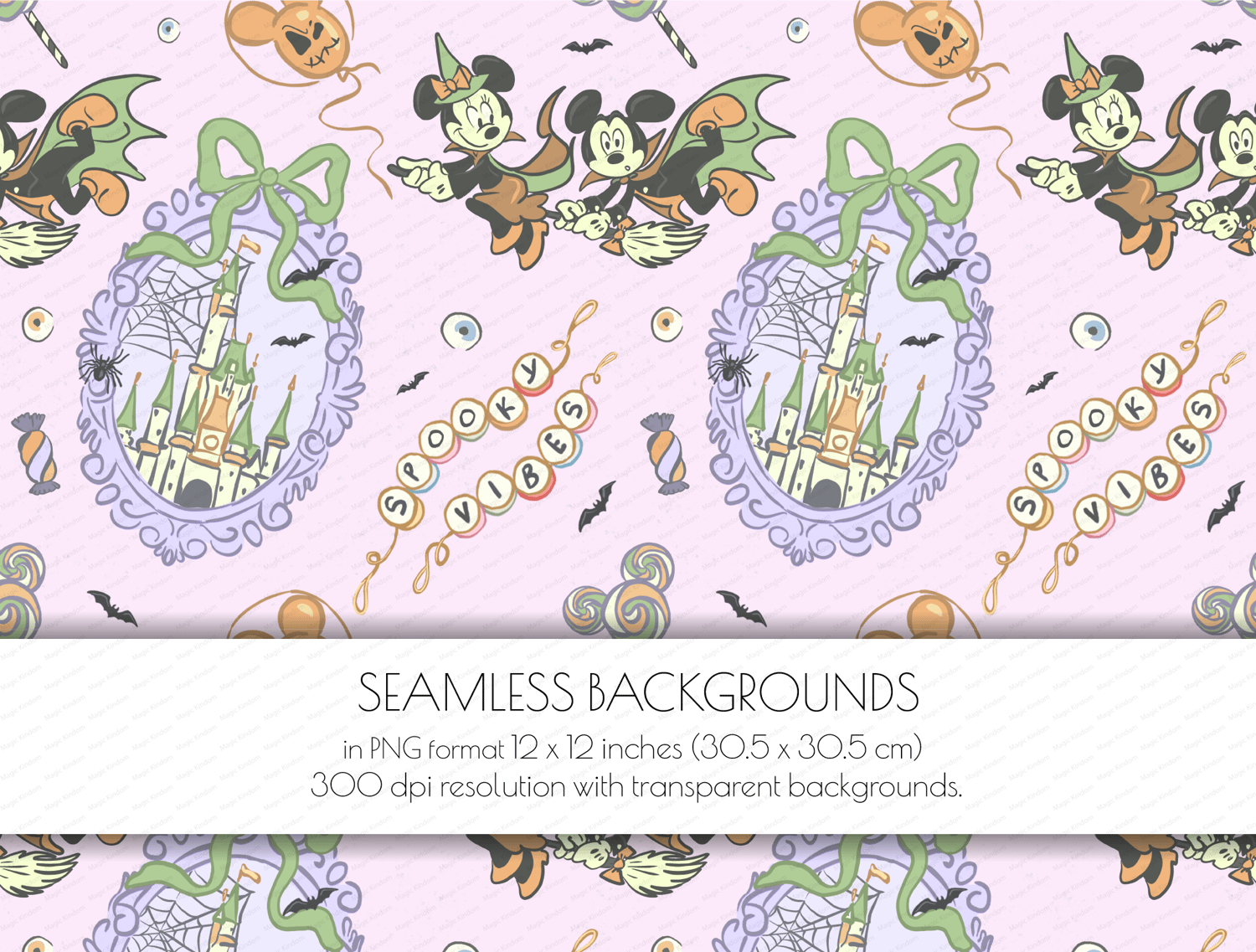 1 Spooky mickey, nightmare on main street Seamlessbackground PNG format 12 x 12 inches (30.5 x 30.5 cm) 300 dpi resolution .