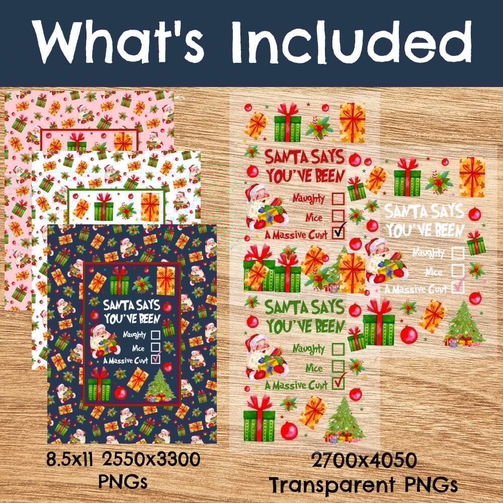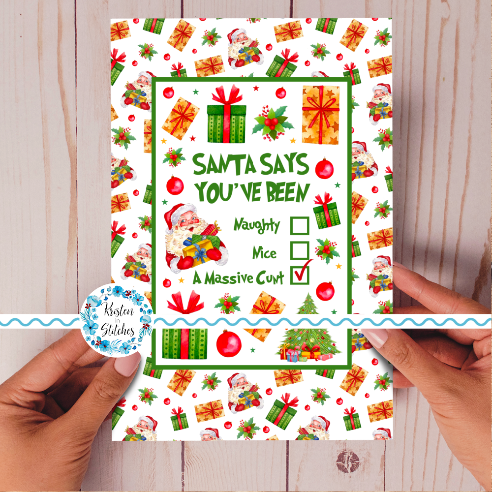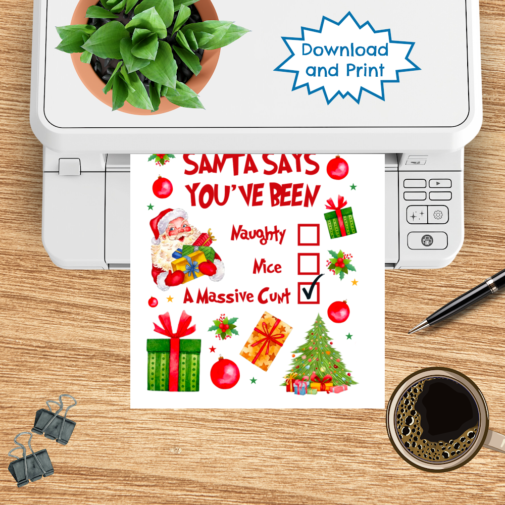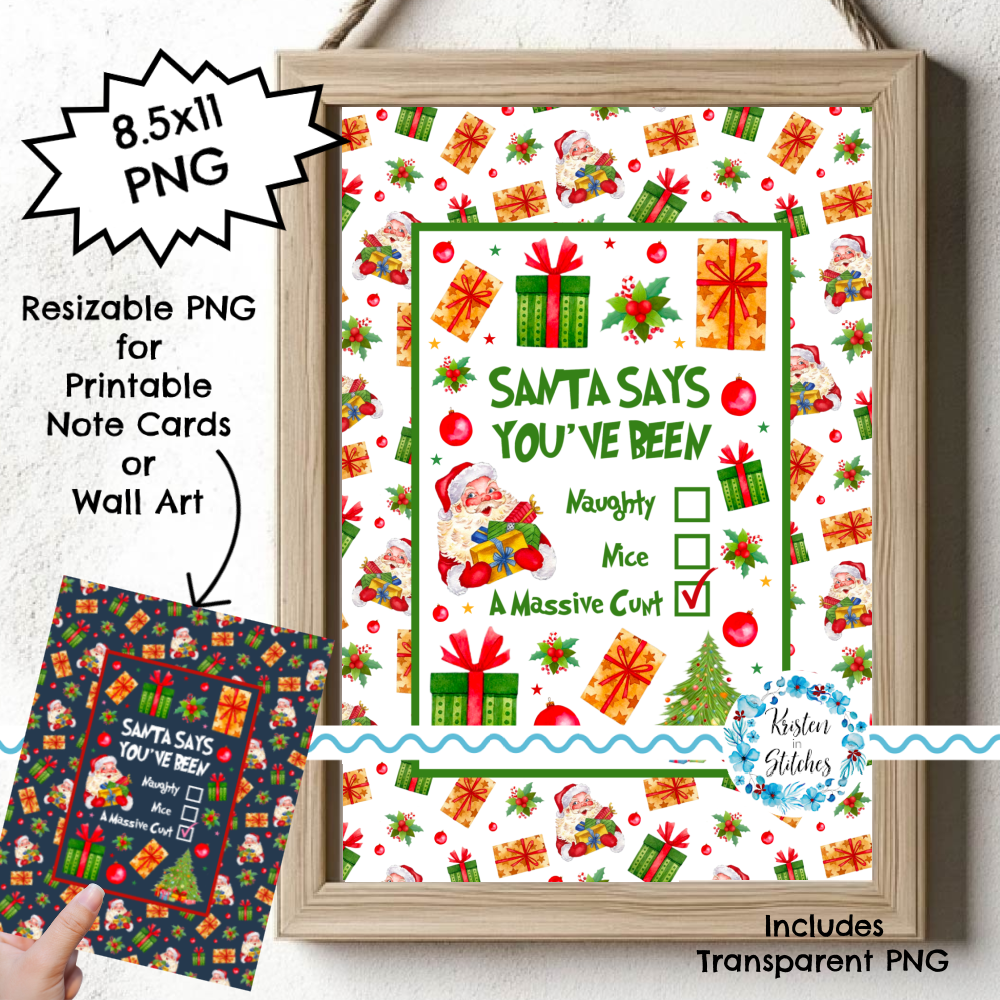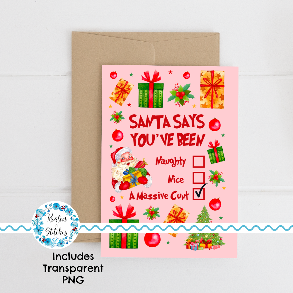 Printable Cards and Wall Art, PNG Transparent Graphics, Jolly as Fuck, Naughty or Nice, Sarcastic Christmas Santa Says You're a Cunt