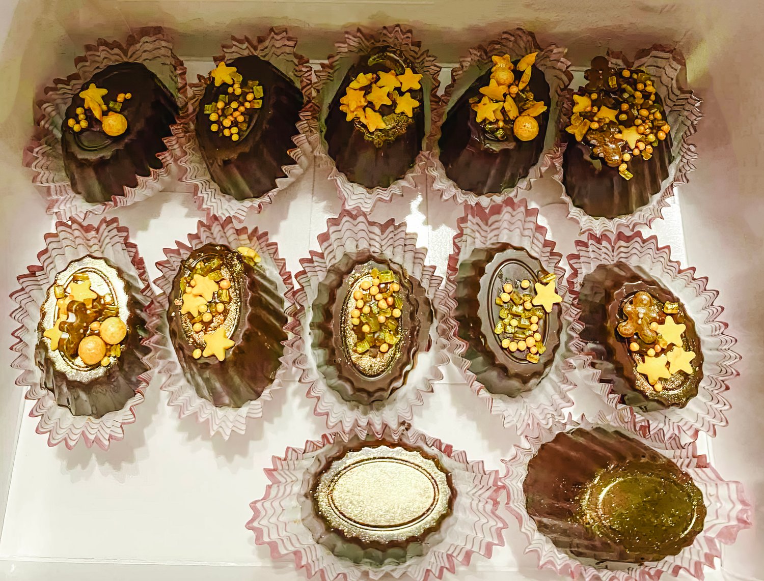 Handcrafted Chocolate Pralines with Golden Star Sprinkles